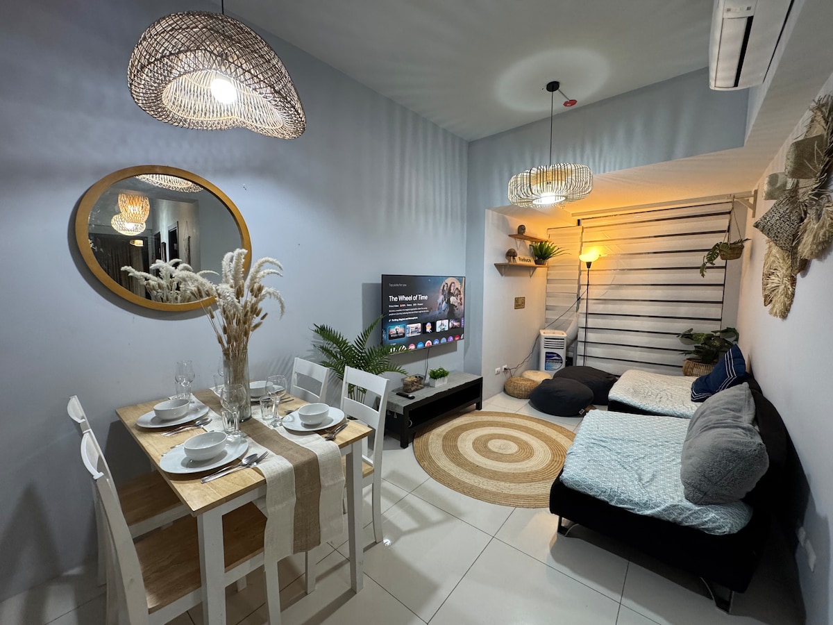 Καλώς ήρθατε στο άνετο, οικογενειακό καταφύγιο σας στο Uptown BGC! Αυτή η ευρύχωρη μονάδα 1 υπνοδωματίου διαθέτει ένα διπλό κρεβάτι, καναπέ-κρεβάτι, επιπλέον καναπέ, πλήρως εξοπλισμένη κουζίνα, γρήγορο WiFi και άφθονο φυσικό φως - ιδανικό για οικογένειες ή επισκέπτες που εργάζονται από το σπίτι. Απολαύστε εύκολη πρόσβαση στο Uptown Mall, το Mitsukoshi, το Landers και κορυφαία σημεία όπως το Bonifacio High Street, το The Mind Museum και το Burgos Circle, όλα σε μικρή απόσταση με τα πόδια!