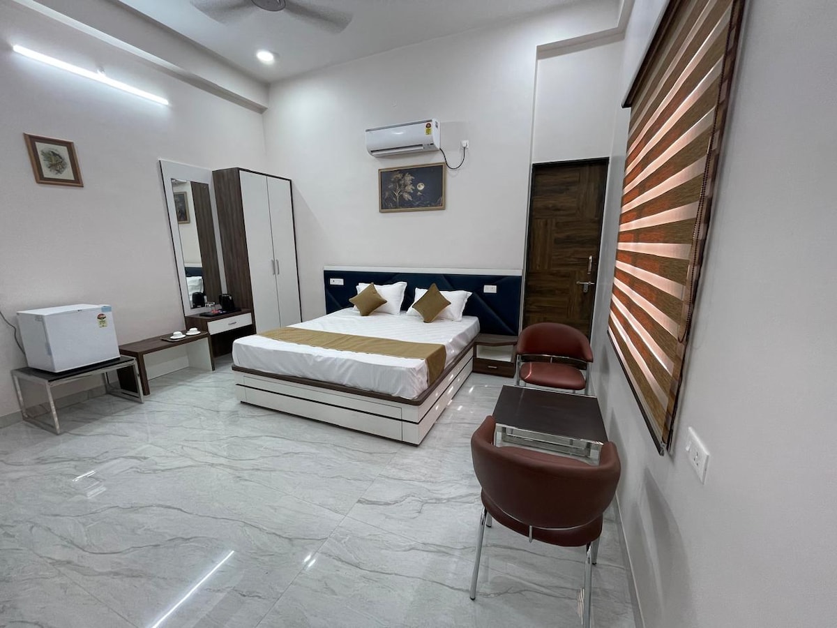550 sqft area's of Suite Bed Room with big size bathroom (Jacuzzi bathtub in this bathroom with facilities of FM, BT, LED lights, massage jets etc.) and steam bath. Big windows of rooms with Amazing view of city which looks absolutely stunning at morning, feels like a big 5 star hotel. Modern amenities, attractively furnished and lovingly maintained for your comfort (Split AC, TV, WiFi, refrigerator, wardrobe, dressing Table, 3 seater Sofa, 2 Chair and Coffee Table are in the bedrooms)