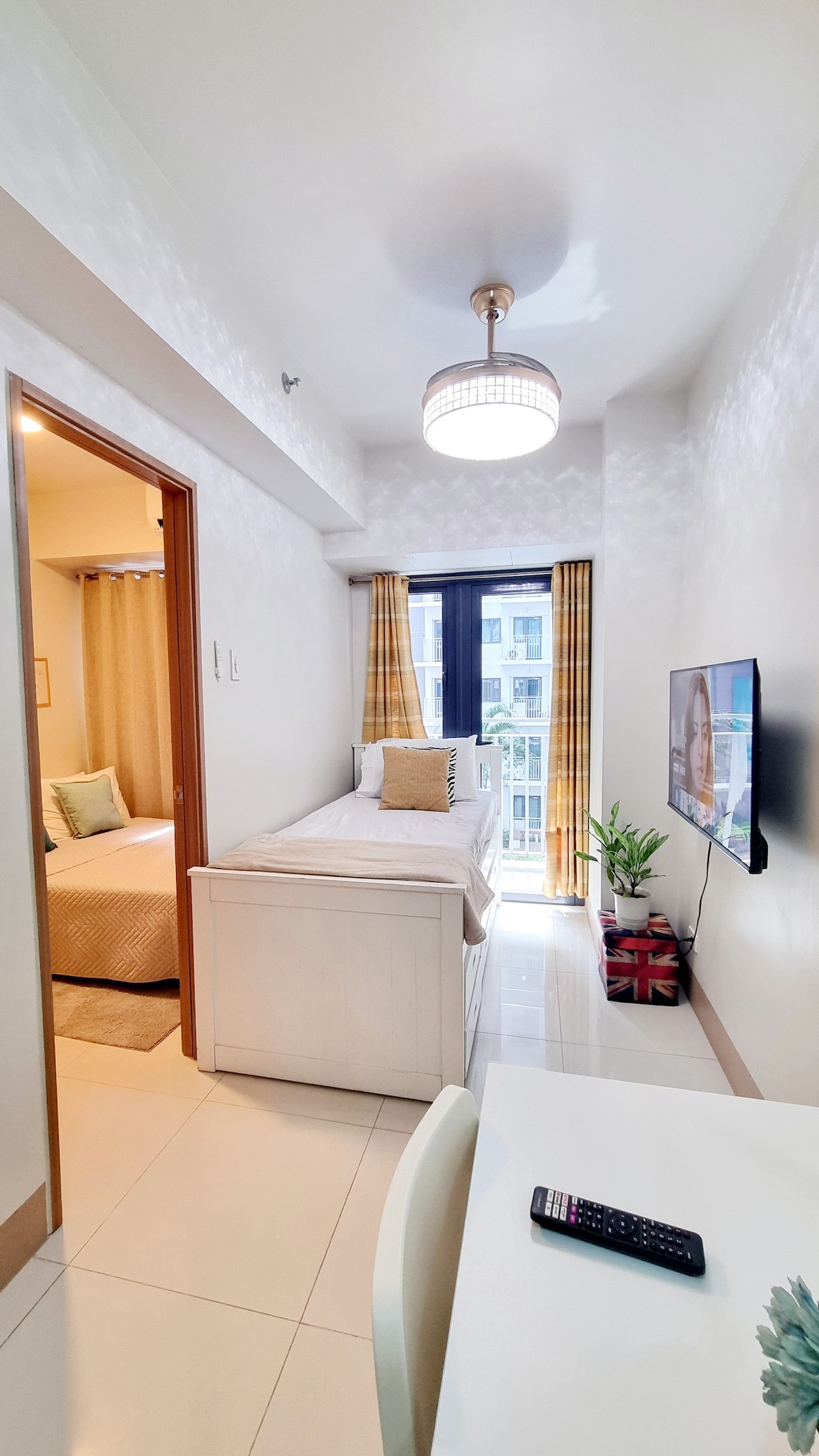 Καλωσορίσατε στο μινιμαλιστικό μας κατάλυμα 1 υπνοδωματίου με εκπληκτική θέα στην πισίνα. Χαλαρώστε στο ευάερο σαλόνι με την έξυπνη τηλεόρασή μας, μαγειρέψτε τα γεύματά σας στην πλήρως εξοπλισμένη κουζίνα μας για να φάτε ή απλά απολαύστε στιγμές κοιτάζοντας έξω από το μπαλκόνι. Αλλά το πιο σημαντικό, κοιμηθείτε ήσυχα στα άνετα κρεβάτια μας. Βρίσκεται σε κοντινή απόσταση με τα πόδια από το ΙΚΕΑ, το συνεδριακό κέντρο SMX, το MOA Arena και τα εμπορικά κέντρα που περιβάλλουν την περιοχή του Mall of Asia. Απολαύστε τα κοντινά εστιατόρια, τις καφετέριες και τα βολικά καταστήματα έξω από το διαμέρισμα.