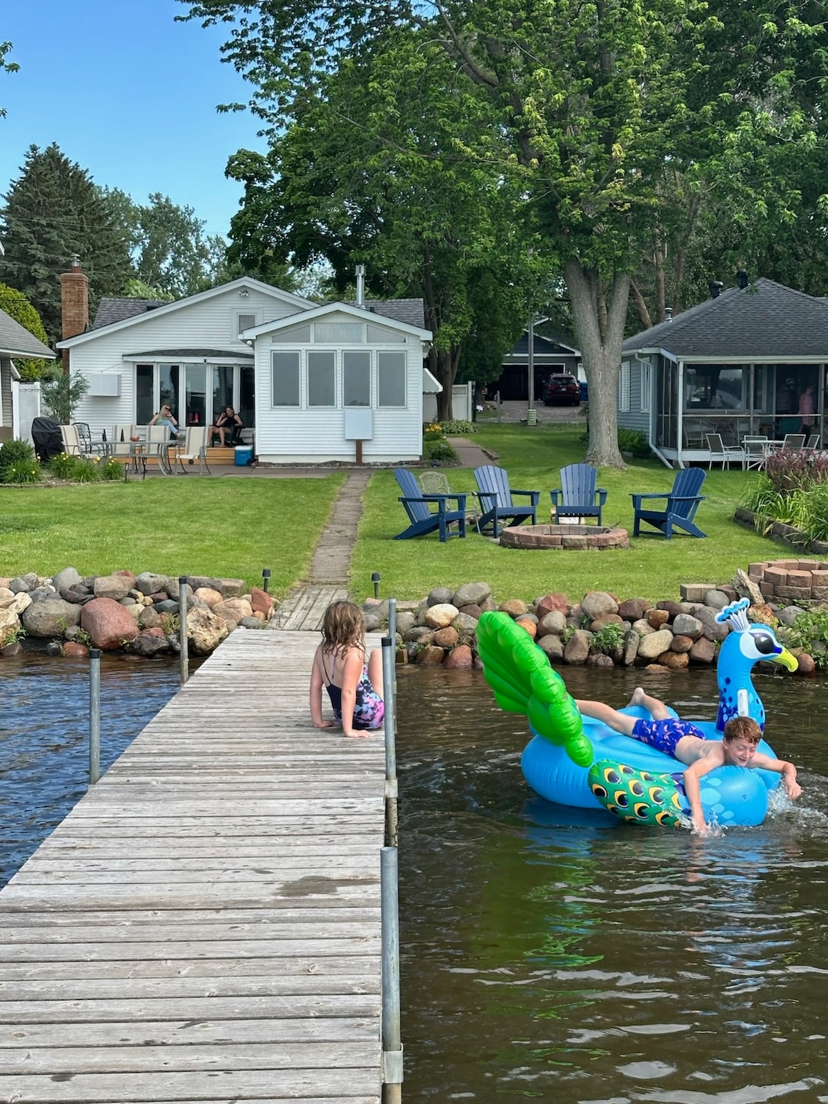 Enjoy all that Lake Life has to offer! Whether you’re playing in the water, paddle boarding, kayaking, fishing, floating peacefully or just watching the sunset over the lake - it’s the escape you deserve! Located just 30 minutes from the northwest metro you can avoid all the hectic weekend travel and spend more time on the lake! We do have a fishing/swimming dock but it's not designed for boats. The yard down to the lake is a bit steep and may be challenging for those with mobility issues.