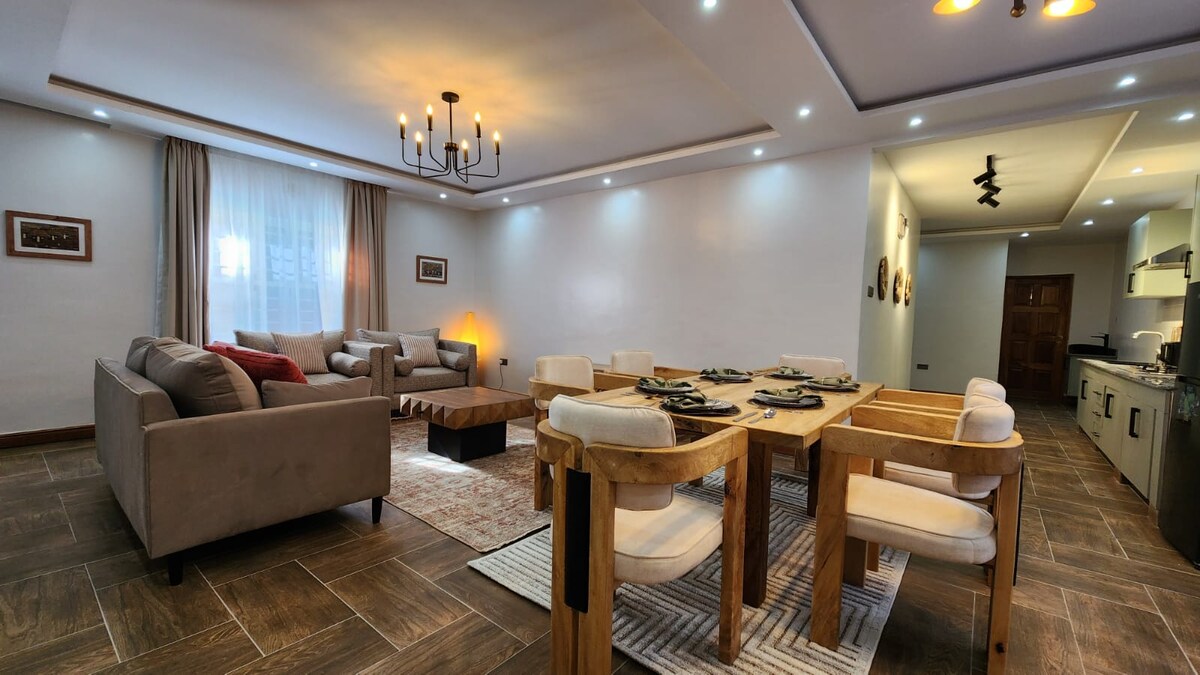 Φέρτε όλη την οικογένεια σε αυτόν τον υπέροχο και ευρύχωρο χώρο με άφθονο χώρο για διασκέδαση. Ευρύχωρο πολυτελές διαμέρισμα 2 υπνοδωματίων, ολοκαίνουργιο και πλήρως εξοπλισμένο, που βρίσκεται στο Sekenani, 5 λεπτά από την είσοδο Sekenani στο Εθνικό Καταφύγιο Masai Mara. Ασφαλές περιφραγμένο συγκρότημα με τείχη και πύλη, με προστατευμένο χώρο στάθμευσης για οχήματα. Εύκολη πρόσβαση από το Ναϊρόμπι, μέσω του ασφαλτοστρωμένου C12. Χρειάζεστε περισσότερο χώρο; Προσφέρουμε επίσης 2 επιπλέον πλήρως εξοπλισμένα στούντιο (με 2 μονά ή 1 king size) στο ίδιο ασφαλές συγκρότημα.