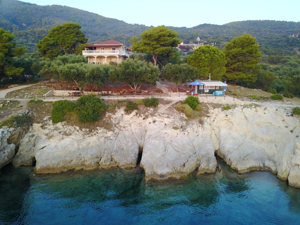 Πέτρινη βίλα με 1 υπνοδωμάτιο με διπλό κρεβάτι, μικρή κουζίνα, σαλόνι με καναπέ-κρεβάτι για 2 άτομα, μπάνιο με ντους και μεγάλη επιπλωμένη βεράντα με θέα στη θάλασσα. Μέσα από ένα μονοπάτι περίπου είκοσι μέτρων φτάνετε στη θάλασσα. Ιδιωτική πρόσβαση στη θάλασσα μόνο για τους επισκέπτες των τριών βιλών μας "Marathia Cottages". Η πέτρινη βίλα είναι μία από τις τρεις, η πιο κοντινή στη θάλασσα.