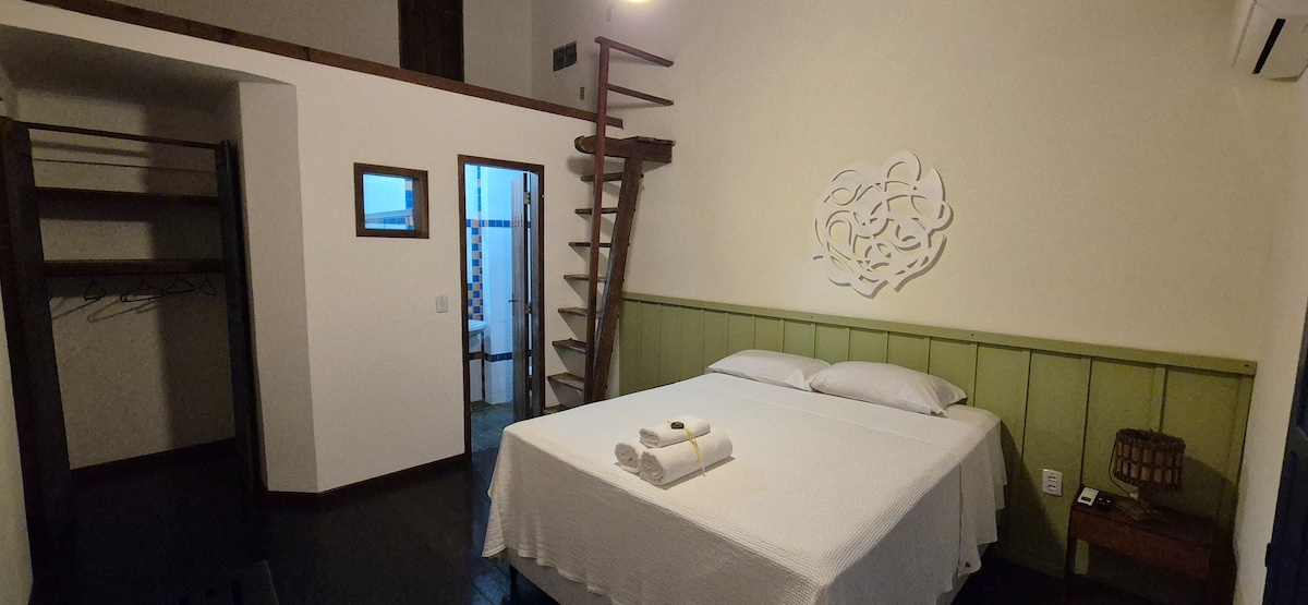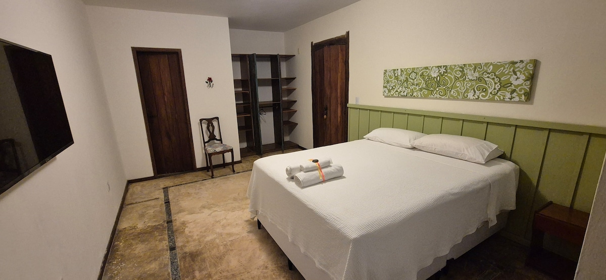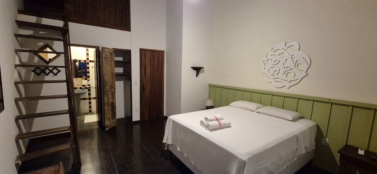 Suíte confortável e bem localizada no centro de Itacaré, perfeita para quem deseja explorar a cidade a pé. Próxima à Pituba, rua principal com bares, restaurantes e comércio, a 2 minutos da Passarela da Vila. O imóvel fica em frente à orla e a Praia da Concha está a cerca de 7 minutos de caminhada (500 m).