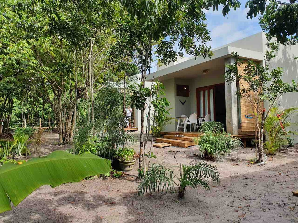 ☕ Το πρωινό περιλαμβάνεται στην ημερήσια τιμή!Ξυπνήστε με τον ήχο της θάλασσας σε ένα αποκλειστικό καταφύγιο μόλις 50 μέτρα από την παραλία Algodões.Premium σουίτα με queen size κρεβάτι, ντους κάτω από τα αστέρια, μπαλκόνι με αιώρα, κλιματισμό, εξοπλισμένη κουζίνα και άφθονη γοητεία.Ιδανικό για όσους αναζητούν άνεση, ιδιωτικότητα και επαφή με τη φύση στη χερσόνησο Maraú, Bahia.