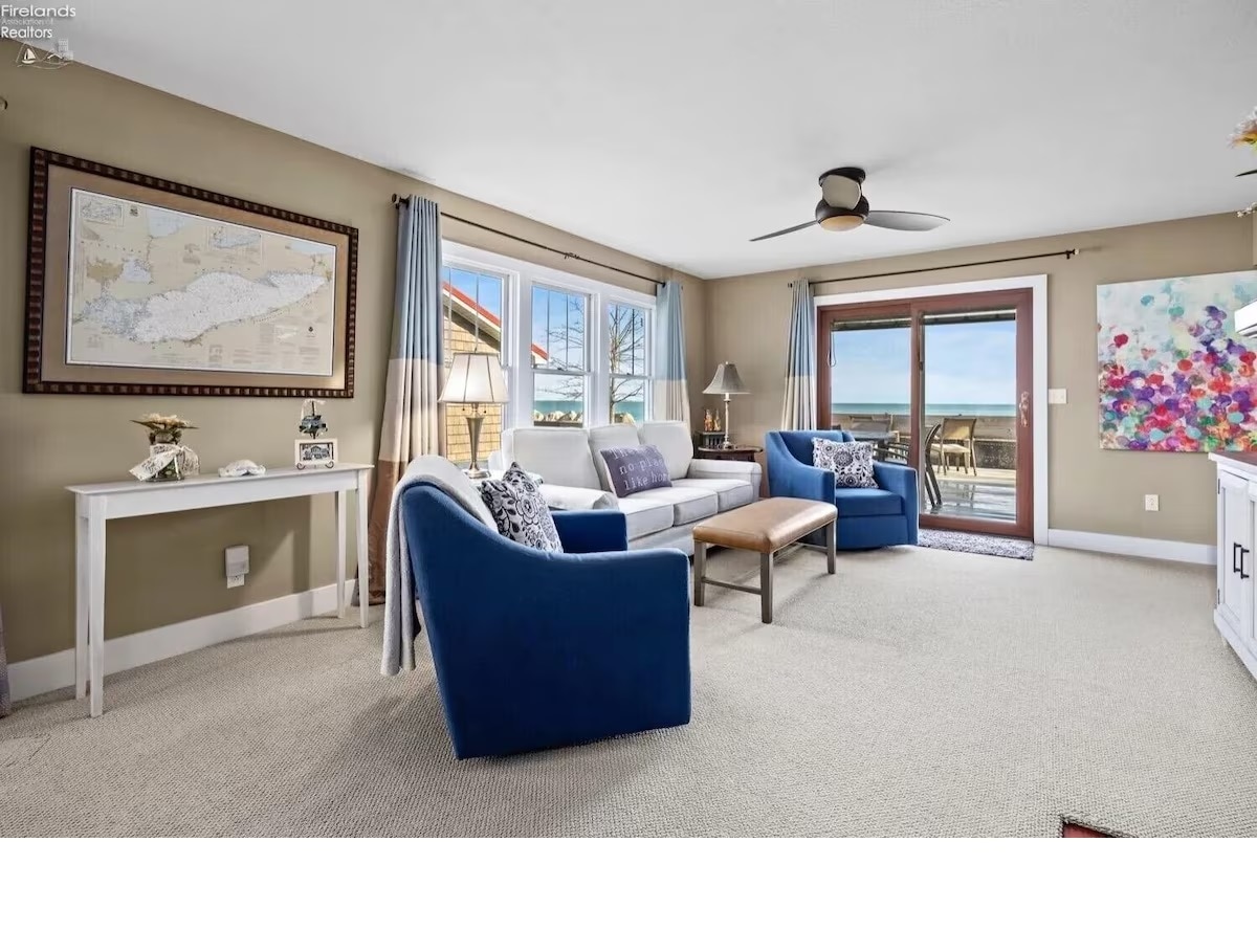 Enjoy amazing lake views in this two-story condo with access to the shores and islands of Lake Erie. Sunrise and sunset views. The condo has two areas for working remotely. We also offer a highchair, travel crib and two Roku TV’s. New furnace and A/C. New trundle bed upstairs. Green space includes Adirondack chairs and a fire pit for roasting marshmallows on the shore. Near Cedar Point Sports Center, Kalahari, Cedar Point Amusement Park, Jet Express, Huron Boat Basin and Nickel Plate Beach.