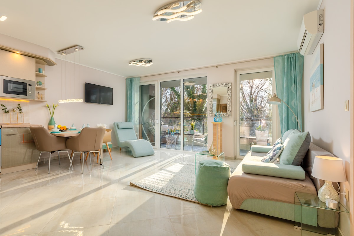 2 υπνοδωμάτια + σαλόνι, νέο πολυτελές διαμέρισμα κοντά στο νερό