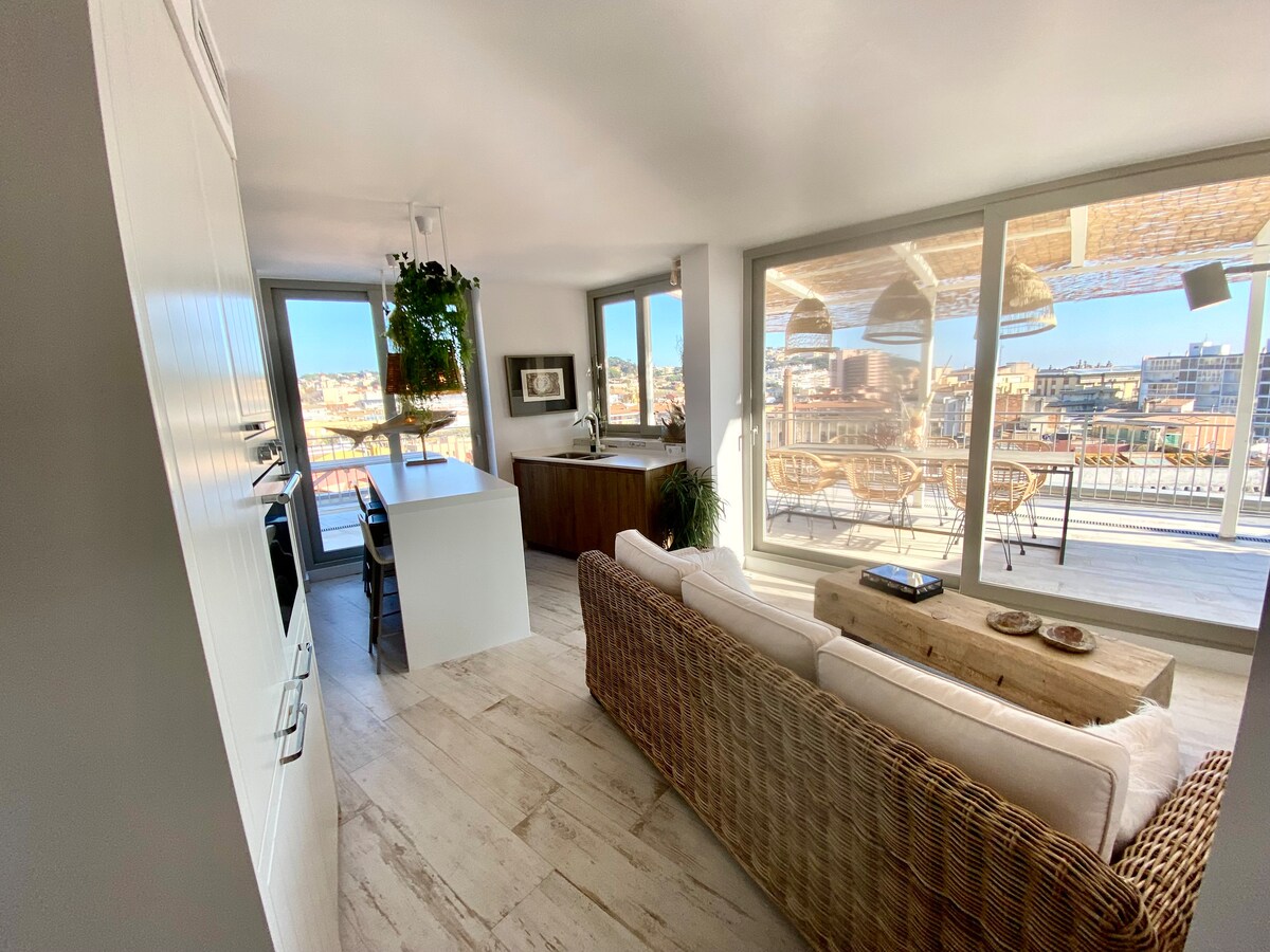 Όμορφο ρετιρέ με βεράντα 70 τ.μ. με χώρο χαλάρωσης και θέα στη θάλασσα, εξωτερικό καναπέ, ξαπλώστρες, στο κέντρο της πόλης, 100 μέτρα από καταστήματα και εστιατόρια, 4 λεπτά από την παραλία, πρόσφατα ανακαινισμένο, όλα νέα σχεδίαση, με 2 υπνοδωμάτια, 1 διπλό κρεβάτι και ένα δωμάτιο με 2 μονά κρεβάτια, το δεύτερο (τύπου Nest) ανασυρόμενο, 1 μπάνιο με μπανιέρα.