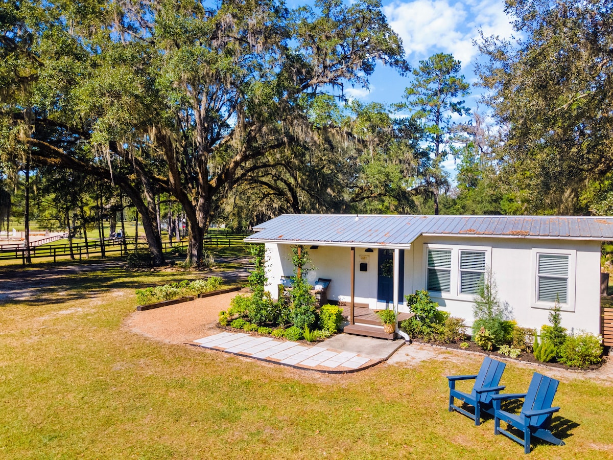Μια ήρεμη απόδραση στη μέση της χώρας των αλόγων Ocala. Το ανακαινισμένο ξυλόσπιτό μας διαθέτει 1 υπνοδωμάτιο (με queen size κρεβάτι)/1 μπάνιο, κουζίνα, νέο πλυντήριο, σαλόνι και τραπεζαρία και ίντερνετ υψηλής ταχύτητας. Σκεφτήκαμε τα πάντα για να γίνει η διαμονή σας ευχάριστη. Παρακολουθήστε τα άλογα να βοσκούν στους στάβλους από τη μπροστινή σας βεράντα ή κάντε πικνίκ έξω. Αν επισκέπτεστε για μια επίδειξη αλόγων, είμαστε ακριβώς απέναντι από το HITS και 10 λεπτά από το WEC. Βρισκόμαστε 30 λεπτά από το Rainbow & Silver Springs, 20 λεπτά από το Canyons Zip Line και 15 λεπτά από το Devil's Den.