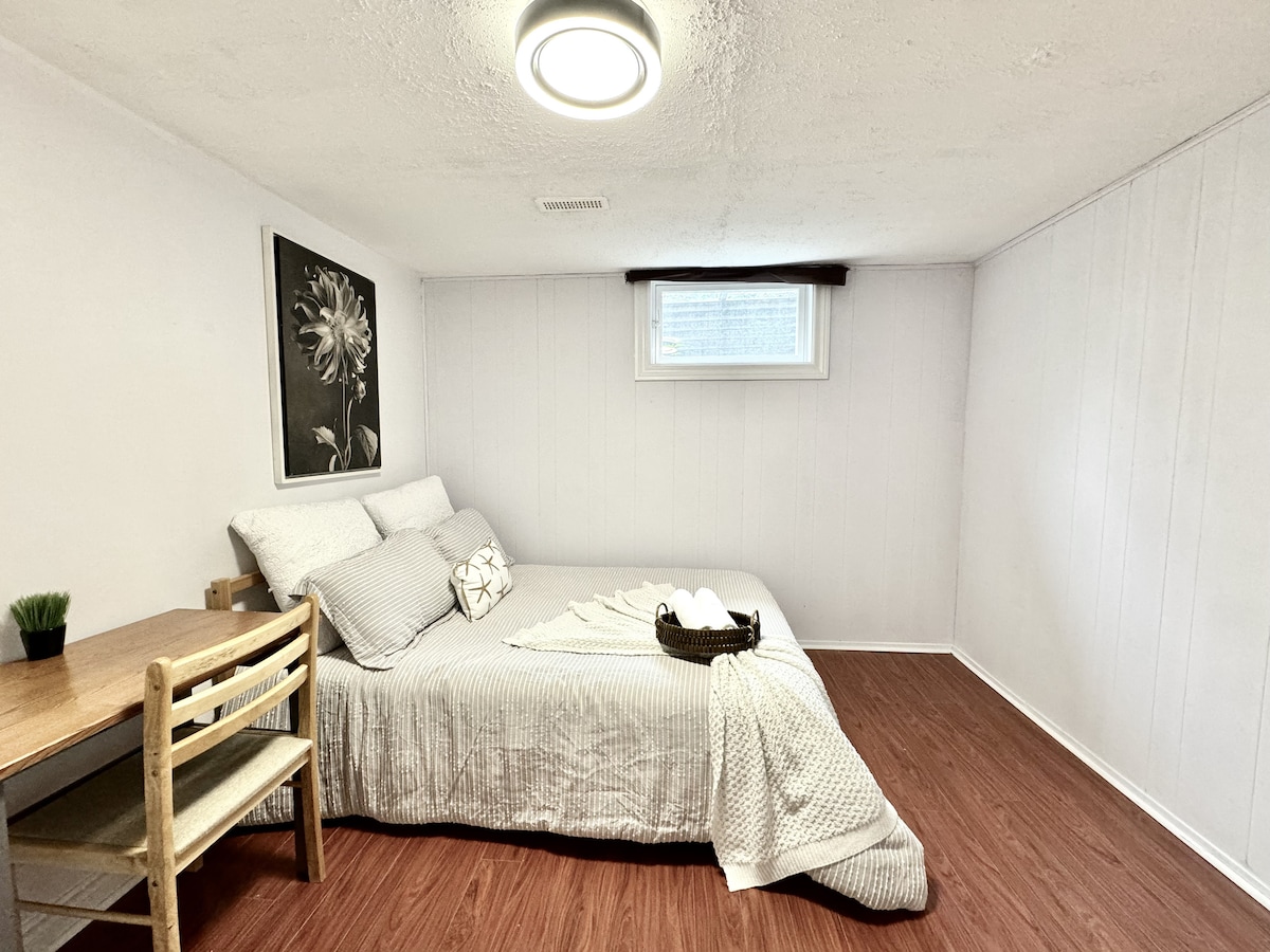 Δεν επιτρέπονται κρατήσεις από τρίτους! Όχι πάρτι! Όχι επισκέπτες! Η ΑΦΙΞΗ ΜΕ ΕΠΙΠΛΕΟΝ ΕΠΙΣΚΕΠΤΗ ΘΑ ΧΡΕΩΘΕΙ ΔΙΠΛΑ! Οι καπνιστές δεν είναι ευπρόσδεκτοι! Φωτεινό και άνετο υπόγειο 1 δωμάτιο 1 μπάνιο, ιδανικό για μια άνετη διαμονή. Απολαύστε WiFi υψηλής ταχύτητας 1Gbps, ένα πολυτελές διπλό κρεβάτι και χώρο ντουλάπας. Ιδιωτικό σαλόνι με τηλεόραση 43 ιντσών με Google TV. Ένας χώρος εργασίας εξοπλισμένος με γραφείο, λάμπα και πίνακα, μαζί με προσεγμένες πινελιές όπως ανεμιστήρα και απαραίτητα είδη στο γραφείο.