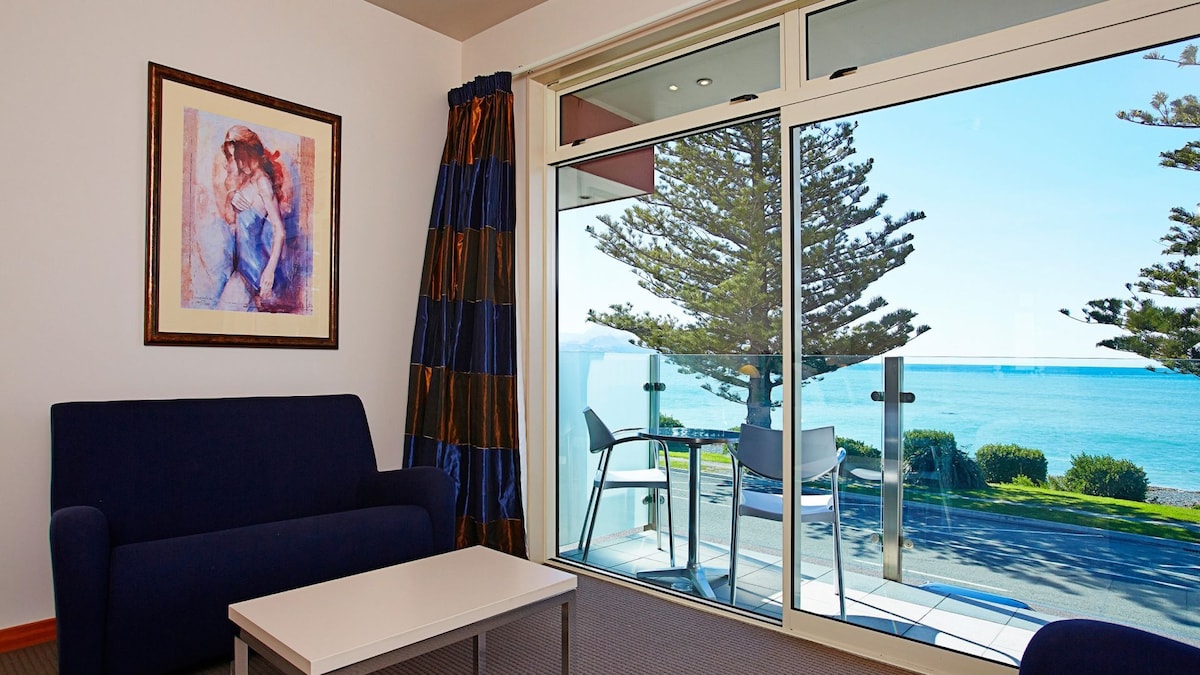 Ακούστε τα κύματα να συντρίβονται στην ακτογραμμή απέναντι. Καλά εξοπλισμένο διαμέρισμα δύο υπνοδωματίων, δύο μπάνιων με 2 υπέρδιπλα κρεβάτια και έναν καναπέ-κρεβάτι στο σαλόνι, εάν απαιτείται. Πρόκειται για ένα πλήρως αυτόνομο διαμέρισμα με ανοιχτή πλήρως εξοπλισμένη κουζίνα, σαλόνι και τραπεζαρία με δικό σας μπαλκόνι. Με εκπληκτική θέα στη θάλασσα και το βουνό και πολλές υπαίθριες δραστηριότητες κοντά, αυτό είναι ένα ιδανικό μέρος για να μείνετε στην Kaikoura.