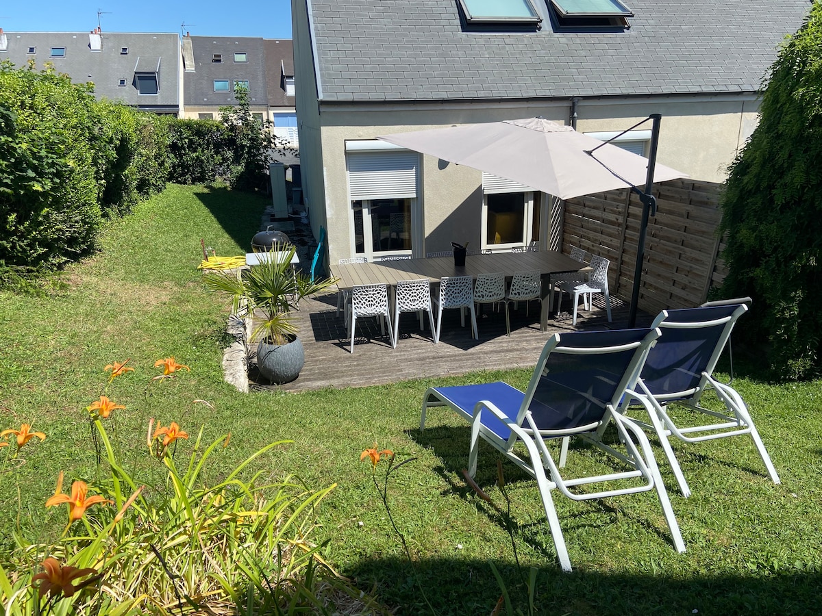 Charmante maison, très lumineuse, entièrement rénové avec une belle terrasse de 50m². La maison est entièrement équipé pour votre confort. Elle est composée d'une cuisine équipée pour 6 personnes avec four, plaque de cuisson , four micro ondes grill , lave vaisselle, frigo, cafetière, lave linge et sèche linge, d'une très belle pièce de vie en rez-de-jardin, de 2 chambres avec 2 grands lits et d'un coin salon avec TV et canapé convertible pour 2 personnes.