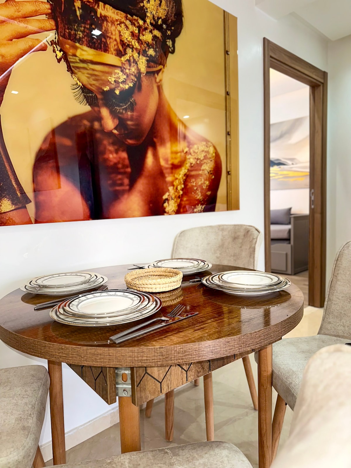 ✨Οικογένειες και Μαρακές - Κομψότητα, χώρος και ηρεμία Σχεδιασμένο για οικογένειες που αναζητούν άνεση και κομψότητα, αυτό το ευρύχωρο διαμέρισμα προσφέρει μια κομψή και φιλόξενη ατμόσφαιρα. Το φωτεινό σαλόνι προσκαλεί κοινές στιγμές, το κομψό υπνοδωμάτιο εξασφαλίζει ήρεμες νύχτες και η λειτουργική τραπεζαρία κάνει την καθημερινή ζωή με τα παιδιά ευκολότερη. Αυτό το πλήρως εξοπλισμένο διαμέρισμα βρίσκεται σε μια ήσυχη γειτονιά και είναι ένα πραγματικό premium καταφύγιο για να χαλαρώσετε και να ανακαλύψετε το Μαρακές με τον δικό σας ρυθμό.