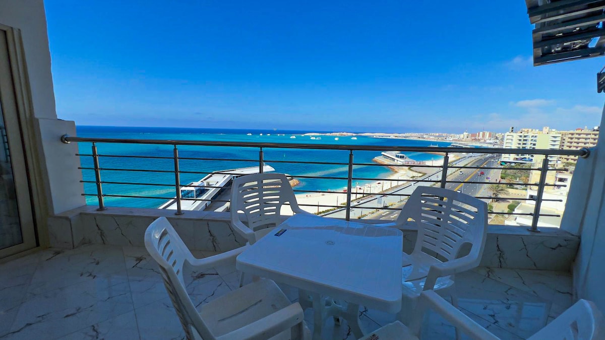 Ξυπνήστε στα εκπληκτικά τιρκουάζ νερά της Μάρσα Ματρούχ σε αυτό το ευρύχωρο παραθαλάσσιο διαμέρισμα 3 υπνοδωματίων. Ιδανικά τοποθετημένος για να προσφέρει πανοραμική θέα στη θάλασσα, ο χώρος μας είναι σχεδιασμένος για μεγάλες οικογένειες και γκρουπ (έχει άνεση για 8 άτομα). Απολαύστε άμεση πρόσβαση στην παραλία, δροσερό αεράκι και την ευκολία της δωρεάν στάθμευσης.