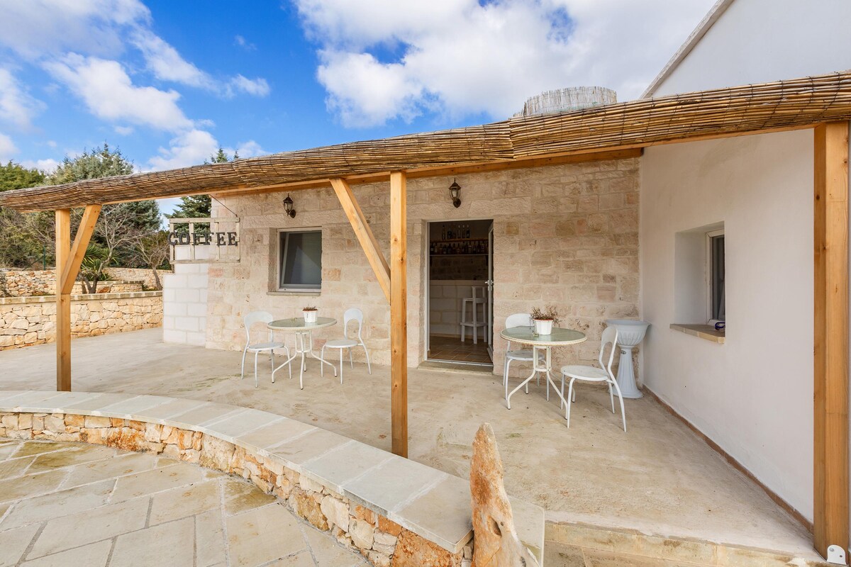 Βίλα μέσα στην καταπράσινη βλάστηση της κοιλάδας Itria. Περιτριγυρισμένη από τρούλους, με μεγάλο εξωτερικό χώρο για χαλάρωση και εσωτερικό από πέτρα με θολούς σε σχήμα αστεριού. 4 χλμ. από τη Μαρτίνα Φράνκα, 8 χλμ. από το Λοκορόντο, 12 χλμ. από το Αλμπερομπέλο, 30 χλμ. από το Οστούνι και τη φανταστική θάλασσα του. Διαδρομές για ποδηλασία και πεζοπορία σε κοντινή απόσταση, ιδανικές για διακοπές απόλυτης χαλάρωσης, στο υπέροχο σκηνικό της Valle dei Trulli.