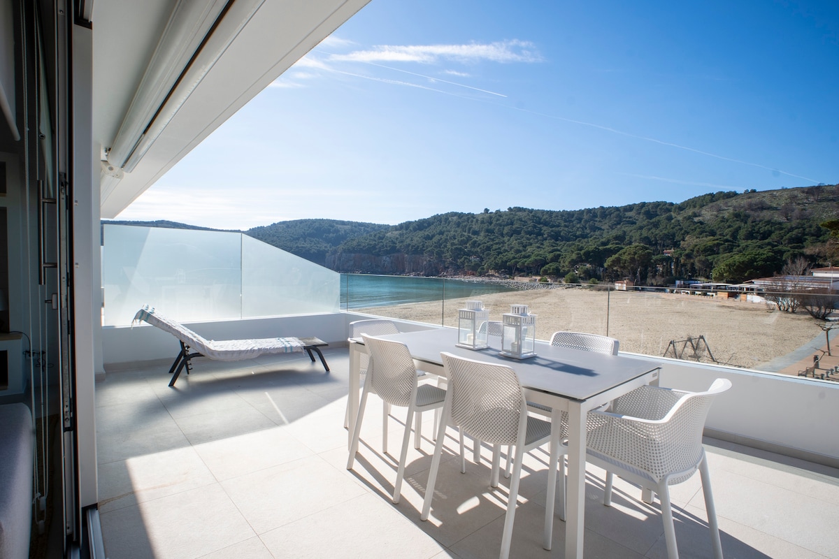 Άνετο διαμέρισμα πλήρως ανακαινισμένο, με μεγάλη βεράντα με θέα στη θάλασσα, προνομιακή και ήσυχη τοποθεσία, σε μία από τις καλύτερες παραλίες της Costa Brava, την παραλία Almadrava. Το διαμέρισμα διαθέτει ιδιωτική άμεση πρόσβαση στην παραλία. Από τη βεράντα, κάτω από μια μεγάλη πέργκολα από φυσικό ξύλο, ιδανική για φαγητό σε εξωτερικό χώρο ή ηλιοθεραπεία, μπορείτε να απολαύσετε μια φανταστική θέα στην παραλία και στον όμορφο κόλπο του Roses.