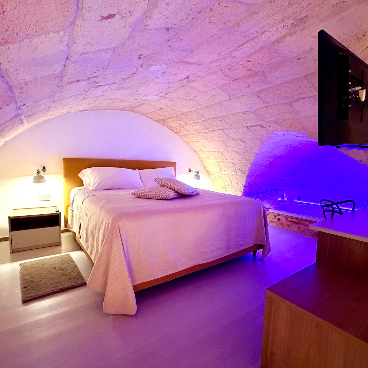 Mata Suite στο Sassi της Matera - Ιδιωτική πολυτέλεια μεταξύ ιστορίας και χαλάρωσης. Στο χιλιετές κέντρο του Sassi di Matera, το Mata Suite είναι ένα αποκλειστικό καταφύγιο που συνδυάζει την αυθεντική γοητεία της πέτρας με την άνεση μιας σύγχρονης και εκλεπτυσμένης υποδοχής Η σουίτα διαθέτει ιδιωτική θερμαινόμενη μικρή πισίνα, μέσα στο βράχο, ιδανική για στιγμές χαλάρωσης, σε μια οικεία ατμόσφαιρα μόνο για το ζευγάρι. Ο απαλός φωτισμός και τα φινιρίσματα συμβάλλουν στη δημιουργία μιας μοναδικής εμπειρίας