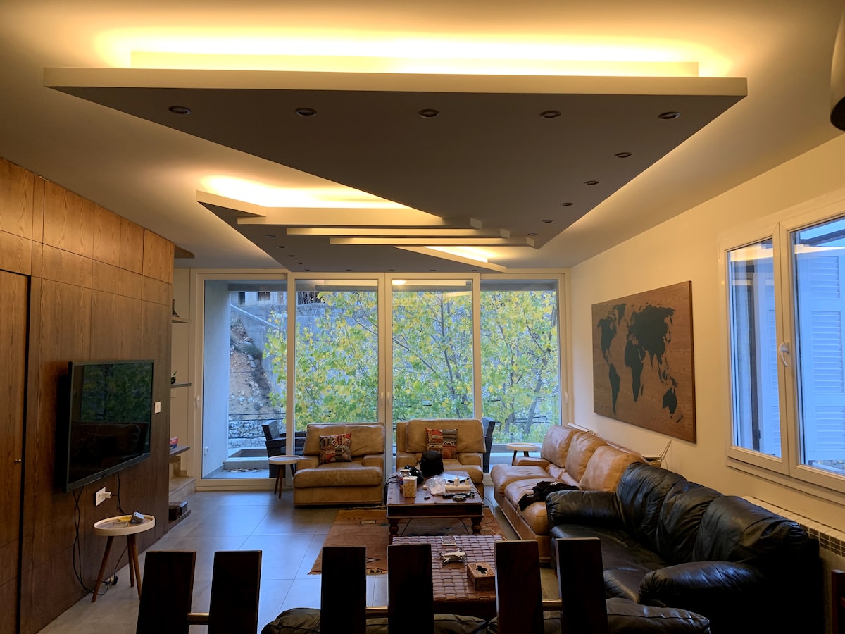 • Cozy 2-bedroom rooftop chalet with stunning valley views 🌄 • Private and peaceful setting surrounded by lush greenery 🌿 • Ideal for families & small groups seeking relaxation 🏡 • Quiet ambiance perfect for reconnecting with nature ✨ • Comfortable mountain retreat for weekend escapes & relaxing stays