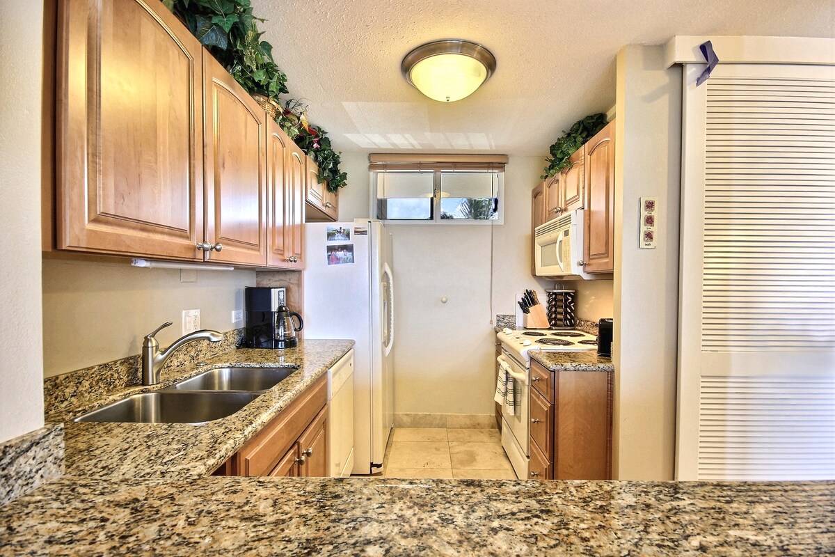 Aloha, and welcome to Sugar Beach Resort, Unit 103! This fully renovated (2023) ground-floor condo offers a high-end, fully stocked kitchen, easy walk-out access, and is just steps from Sugar Beach. Enjoy a heated pool, jacuzzi, and dry sauna after a day in the sun. Beach chairs and towels are provided for easy, stress-free beach days. Sugar Beach Resort is centrally located — just 15 minutes to OGG, Costco, Target, Whole Foods, and Walmart, and 30 minutes to Lahaina, Paia, or upcountry.
