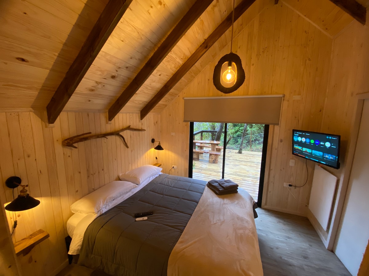Προσφέρουμε μια ρουστίκ και όμορφη καμπίνα για δύο άτομα στη μέση του φυσικού δάσους της περιοχής Maule, απομονωμένη από άλλες καμπίνες και μόνο 15 λεπτά από το Εθνικό Πάρκο Radal Siete Tazas. Αν είστε λάτρης της φύσης και αναζητάτε ηρεμία και γαλήνη σε αυτό, αυτή η επιλογή είναι για εσάς! Δεν θα το μετανιώσετε!