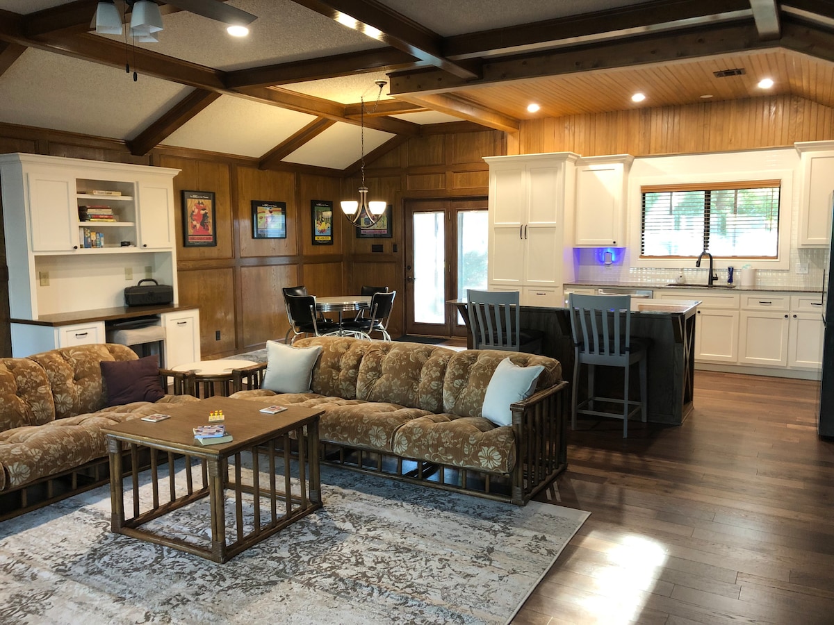 Άνετο μονόροφο σπίτι σε σχήμα Α της δεκαετίας του '70 γεμάτο προσωπικότητα και ρετρό εμπειρία της δεκαετίας του '70. Ήσυχη γειτονιά. Χωράει 4 άτομα άνετα με καταλύματα για 6 άτομα. Φαγητό, ψώνια, πάρκα, θέατρο και υπερσύγχρονο κέντρο αναψυχής σε απόσταση 1 μιλίου. Ιδανικό για βραχυπρόθεσμα ή μακροπρόθεσμα επαγγελματικά ταξίδια. Μόλις 5 λεπτά βόρεια του βιομηχανικού πάρκου Mid-America και εύκολη μετάβαση στο Διεθνές Αεροδρόμιο της Τούλσα. Κεντρική τοποθεσία τόσο σε ιστορικά όσο και σε νέα τουριστικά αξιοθέατα. Δεν είναι κατάλληλο για παιδιά κάτω των 12 ετών ή κατοικίδια.