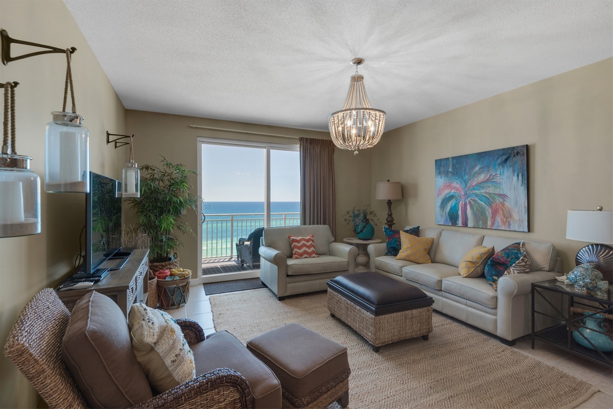 **Περιλαμβάνονται ξαπλώστρες παραλίας** Διαμέρισμα 2 υπνοδωματίων 2 μπάνιων με αναδιπλούμενο καναπέ είναι ιδανικό για οικογένειες και φίλους. Βρίσκεται στα μισά του 11ου ορόφου στο Sterling Reef. Πρόσφατα ανακαινισμένο με εκπληκτική θέα στη σμαραγδένια ακτή. Είναι ιδανικό για μια γρήγορη απόδραση ή για μεγαλύτερες αποδράσεις. Με όλες τις παροχές και τη γρήγορη πρόσβαση στην παραλία στην ιδιοκτησία, δεν θα θέλετε να φύγετε! Βρίσκεται περίπου 3 μίλια από το Pier Park και σε κοντινή απόσταση με τα πόδια από το Shipwreck Island. Είναι κεντρικά τοποθετημένο για να φτάσετε γρήγορα εκεί που πρέπει!