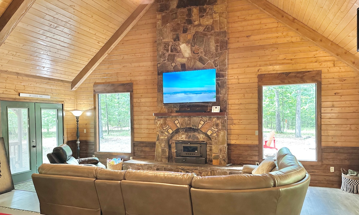 Like past guests, you’ll love our cabin, Mount Mirabelle, for your Broken Bow trip! Here’s why: - Panoramic mountain views - 5 min drive to town - Great reviews - No hidden fees - 1k sqft - 18ft. catherdral ceilings - Main floor: 1 King + 1 Full pullout - Hot tub - Firepit - Deck w/ outdoor dining - Digital board games - Custom tile shower - Fast Wifi (1GB) - Paved driveway - Boat/RV parking - Fully equipped kitchen We'd love to host you! Don't miss out, openings are limited & filling fast