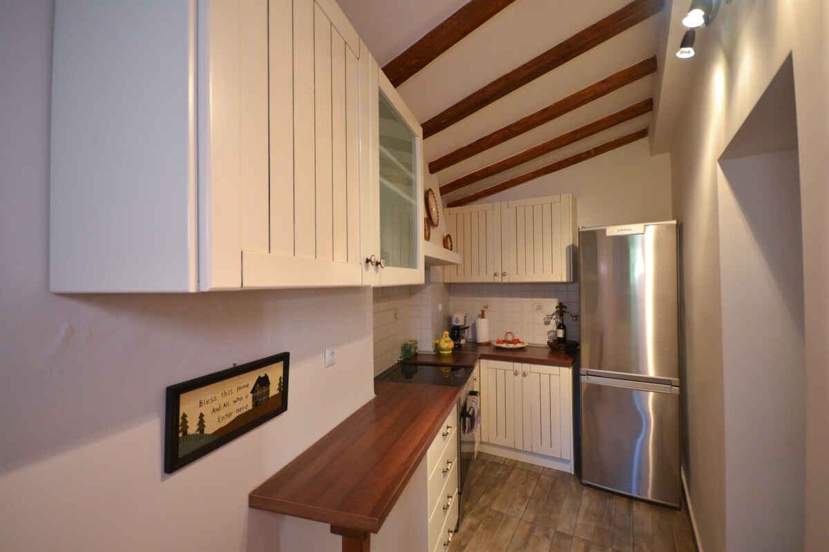 Two-storey house with loft, 108 m² build of stone and wood at the first village of Pelion,Agria. 80 meters from the beach, 7 km from the center of Volos and 19km from Pelion ski center. Outside stone BBQ for the sunny days and fireplace inside for the cold ones.
