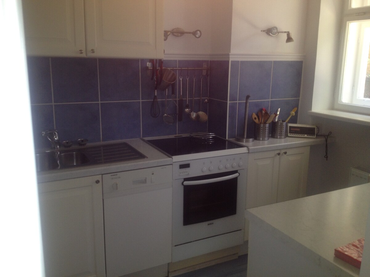 Ευρύχωρος χώρος/κουζίνα, τραπεζαρία και το σαλόνι σε ένα. Νέο ξύλινο παρκέ δάπεδο. Δύο ξεχωριστά υπνοδωμάτια με διπλά κρεβάτια - άνετα και άνετα. - πρέπει να περάσετε από το πρώτο - για συνδεδεμένους ανθρώπους. Πλυντήριο ρούχων και πιάτων - όλα τα σκεύη κουζίνας για μαγείρεμα και μια μηχανή nespresso και γαλλικό πιεστήριο. Ηρεμήστε μέσα και έξω. Με ένα βήμα βρίσκεστε στον κήπο και μπορείτε να καθίσετε σε ένα ωραίο σύνολο. Κοντινή απόσταση από το τραμ/λεωφορείο, τα καταστήματα, τα πάρκα, την πισίνα. 15 λεπτά από την πόλη. Όχι γάτες, παρακαλώ.