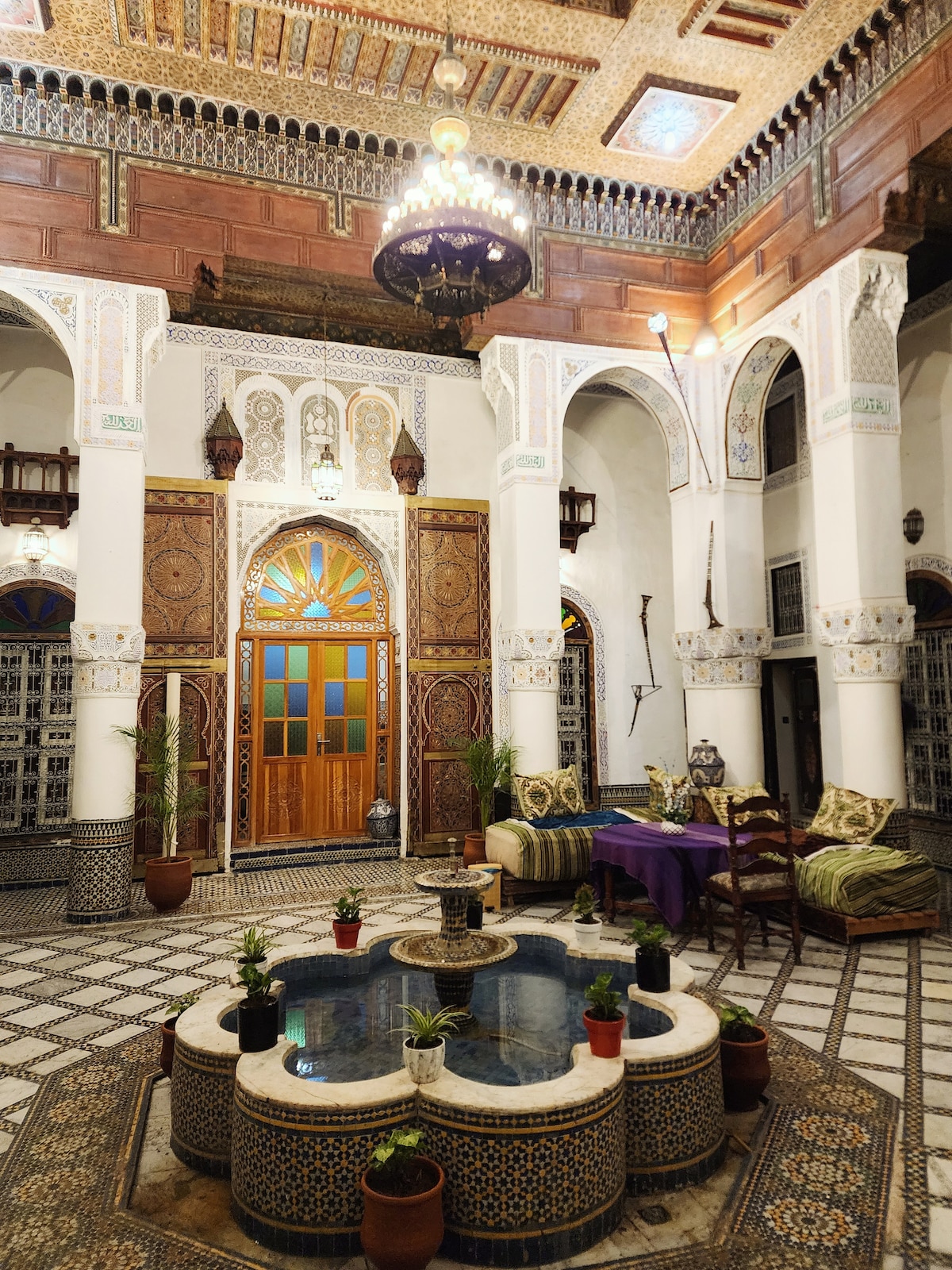 Dar Bennani is a beautifully restored 4-bedroom courtyard house in the heart of Fez Medina, Morocco’s ancient capital. This historic gem features vibrant traditional decor, grand proportions and contemporary comforts. But it has the 'lived in' feel of a home, not a hotel. The large roof garden offers stunning views of the Medina and hilltops. Located minutes from bustling souks, famous markets, and top restaurants, Dar Bennani is the perfect base for exploring Fez’s rich history and culture.