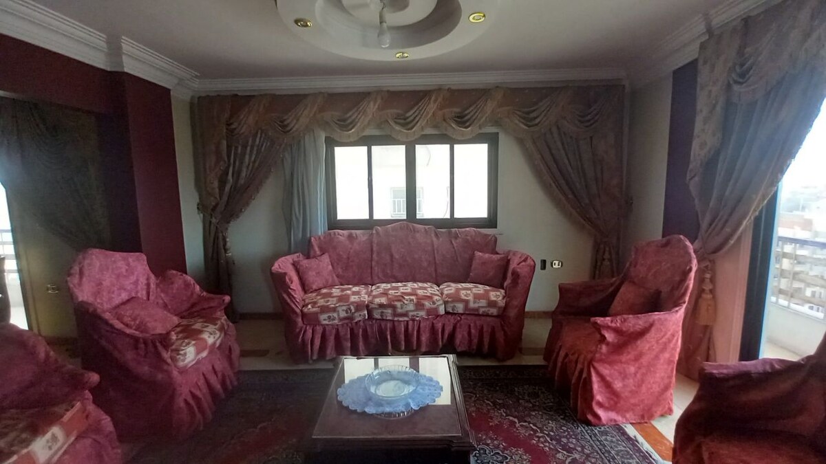 Δίπλα στο Πανεπιστήμιο Μανσούρα, ένα καθαρό, κλιματιζόμενο διαμέρισμα για εσάς και την οικογένειά σας