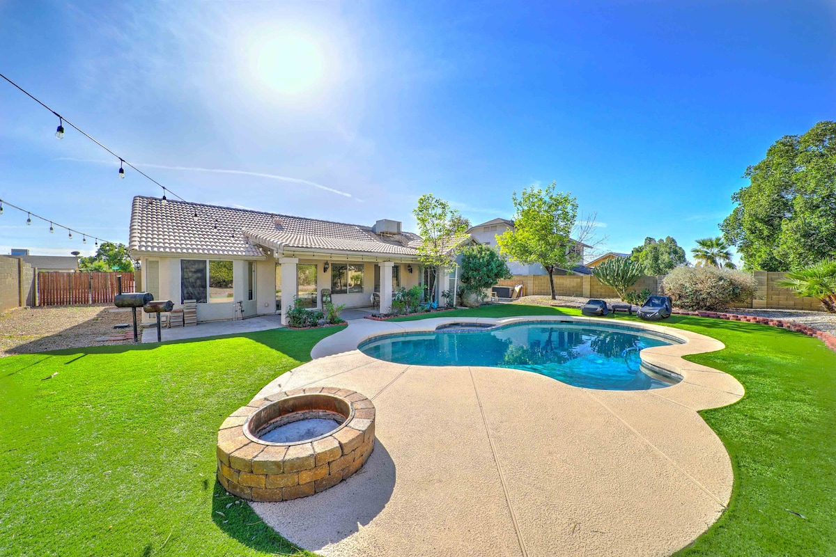 Όμορφο σπίτι με πισίνα και τζακούζι στην κοινότητα Augusta Ranch Golf Course Mesa, AZ. Αυτό το σπίτι, με τα 3 υπνοδωμάτια, τα 2 μπάνια, την πλήρως εξοπλισμένη κουζίνα και την πίσω αυλή που μοιάζει με θέρετρο. Ο τεράστιος καταρράκτης της πισίνας είναι ευχάριστος τόσο για να τον δείτε όσο και για να τον ακούσετε. Υπάρχει ένα μεγάλο μπάρμπεκιου από γρανίτη και φυσική πέτρα για όλες τις ανάγκες μαγειρέματος. Το τζάκι εξωτερικού χώρου προσφέρει μια φιλόξενη ατμόσφαιρα για ένα κρύο βράδυ. Το τζακούζι 6 ατόμων σάς επιτρέπει να χαλαρώσετε όλη τη νύχτα!