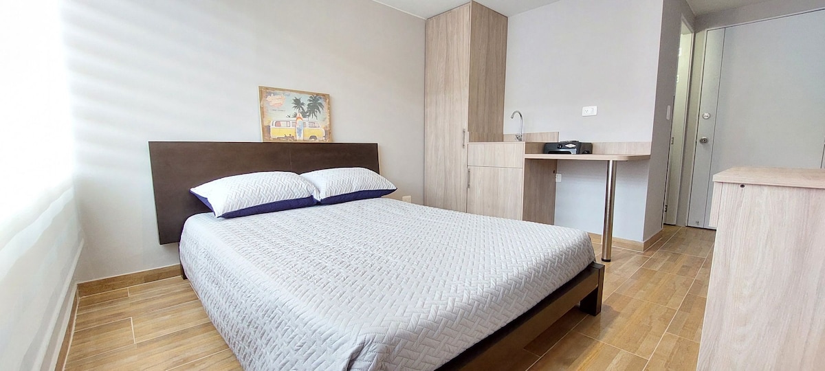Αυτό το ξεχωριστό μέρος είναι κοντά σε όλα, διευκολύνοντας τον προγραμματισμό της επίσκεψής σας. Δωμάτιο με κουζίνα και μπάνιο, πολύ κοντά, εξαιρετικός χώρος και εμπειρία διαμονής. Όλα όσα χρειάζεστε για να περάσετε μια καλή διαμονή σε ένα από τα στρατηγικά και κεντρικά μέρη της Μπογκοτά. Πάρκα, εμπορικά κέντρα, εστιατόρια και εξαιρετική πρόσβαση στις δημόσιες συγκοινωνίες και τις κεντρικές λεωφόρους. Πολύ φωτεινή, ήσυχη, ταλαντούχα και με θέα στην πόλη. ημιδιπλό κρεβάτι. Σε 5 όροφο χωρίς ασανσέρ.