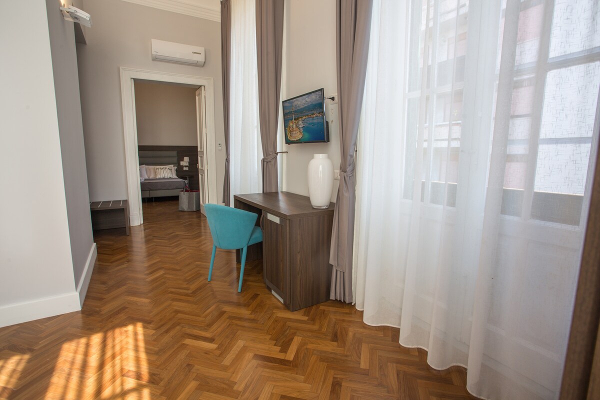 Στο ιστορικό κέντρο του Reggio Calabria, υπάρχει η "Πολυτέλεια των Συρακουσών", μέσα στο παλάτι των Συρακουσών, ένα από τα πιο σημαντικά κτίρια της Αντιβασιλείας της Ελευθερίας με μια μετρημένη ισορροπία μεταξύ δομής, διακόσμησης και σχήματος. Το ακίνητο αποτελείται από ένα διάσημο διαμέρισμα, άνετο και φωτεινό, με τρεις σουίτες όλες με ιδιωτικό μπάνιο, σαλόνι και μεγάλη βεράντα. Η επίπλωση, απαραίτητη και σύγχρονη, καθορίζει έναν αρμονικό συνδυασμό κομψότητας και άνεσης.
