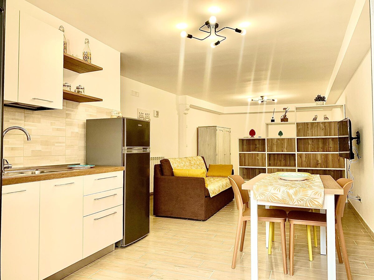 Arredamento moderno e confortevole, appartamento a pochi passi dallo svincolo A3 di Villa San Giovanni, dagli imbarchi per la Sicilia e dalla stazione ferroviaria. Adatto a famiglia ma anche ad amici che vogliono visitare la bellissima Scilla a soli 10 km oppure il lungomare di Reggio Calabria definito il kilometro più bello d italia.Parcheggio coperto a pagamento e noleggio biciclette