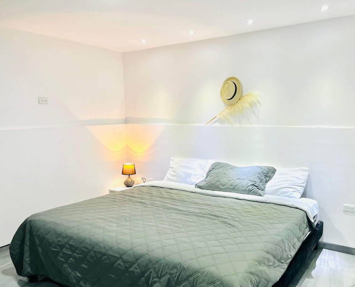 Suite de un solo ambiente, cuenta con cocina, sala y comedor, cama queen, baño privado y Tvcable. Cerca del Hospital Metropolitano, atencion 24 horas. Ambiente seguro Wi-Fi de alta velocidad. Se puede agregar desayuno americano por $5,00 y traslados desde el aeropuerto por $25,00