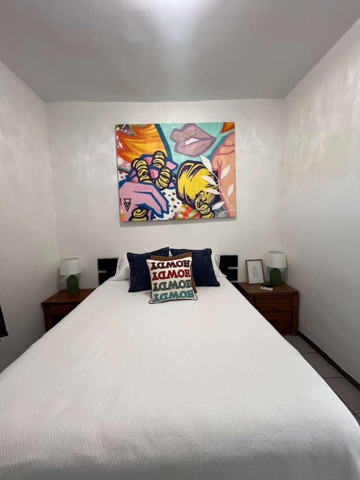 Χαλαρώστε σε αυτόν τον ευρύχωρο, ήσυχο και κομψό χώρο, στον δεύτερο όρο, με εύκολη αυτόνομη πρόσβαση και κοντά στα καλύτερα εμπορικά κέντρα. Λίγα λεπτά από το αεροδρόμιο και το διεθνές τελωνείο. Ένα υπνοδωμάτιο, ένα κρεβάτι Queen Size, ένα νέο στρώμα Sealy Posturepedic platinum, Smart TV, WiFi, σαλόνι, πλήρες εσωτερικό μπάνιο, εξοπλισμένη κουζίνα, αυλή με ψησταριά, πισίνα, ντους και εξωτερική τουαλέτα.