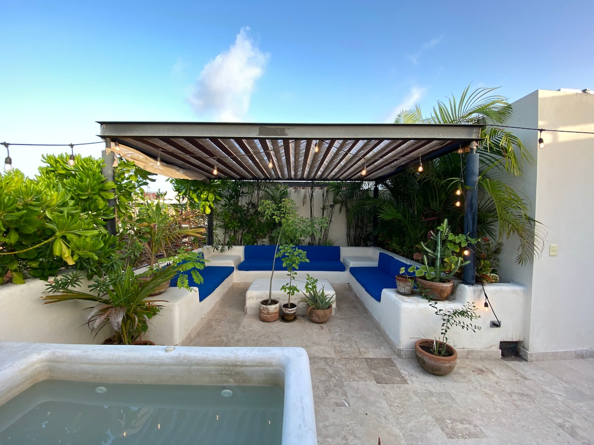 Όμορφη και ευρύχωρη σουίτα με υπέρδιπλο κρεβάτι, περιστρεφόμενη τηλεόραση 50", κλιματισμό, κουζίνα, μπάνιο και ιδιωτική πισίνα. Νιώστε την ηρεμία, χαλαρώστε στο τζακούζι της ιδιωτικής σας πισίνας και απολαύστε την άνεση που σας προσφέρει όλα όσα χρειάζεστε για μια ευχάριστη διαμονή. Βρισκόμαστε στην Punta Zicatela, 7 λεπτά με τα πόδια από την παραλία, το κύριο σημείο για σέρφινγκ, εστιατόρια, μπαρ και εμπορική περιοχή. Κοντά σε όλα, αλλά μακριά από τη φασαρία του πάρτι. Έχουμε Starlink Internet