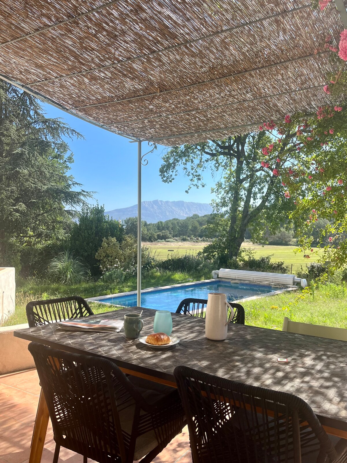 Ιδιοκτησία 20 λεπτά από την Aix-en-Provence με εκπληκτική θέα στο Sainte-Victoire, τόσο αγαπημένο στον Cézanne. Αυτό το κατάλυμα σάς καλωσορίζει με κήπο και χώρο στάθμευσης. Ανεξάρτητη πρόσβαση 40 τ.μ. περίπου. Σκιερό αίθριο με μεγάλη ηλιόλουστη βεράντα. Μια πισίνα 10x7 κατά τη διάρκεια της σεζόν (15 Ιουνίου/15 Σεπτεμβρίου) για κοινή χρήση με εμάς (τις καθημερινές εργαζόμαστε, οπότε...) Μια ενσωματωμένη κουζίνα ανοιχτή στο σαλόνι, τραπεζαρία, τηλεόραση, καθώς και μια κύρια σουίτα (με υπέρδιπλο κρεβάτι) 180x200 με μπάνιο και τουαλέτα, φυσικά όλα κλιματιζόμενα. ❄️ 👍