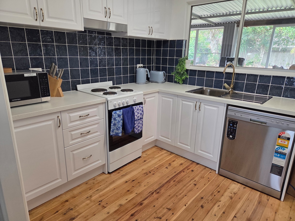 Bernie’s Place is a freshly renovated coastal cottage perfectly located near Port Macquarie’s beautiful beaches and buzzing CBD. With a brand-new kitchen and bathroom, plus a second toilet, the home is designed for comfort and easy holiday living. Enjoy a separate adults’ retreat featuring a quirky, fun and unique enclosed space, while the old school theatre room is the perfect hangout for kids and big kids alike. Bernie’s Place has everything you need to relax, unwind and feel right at home.