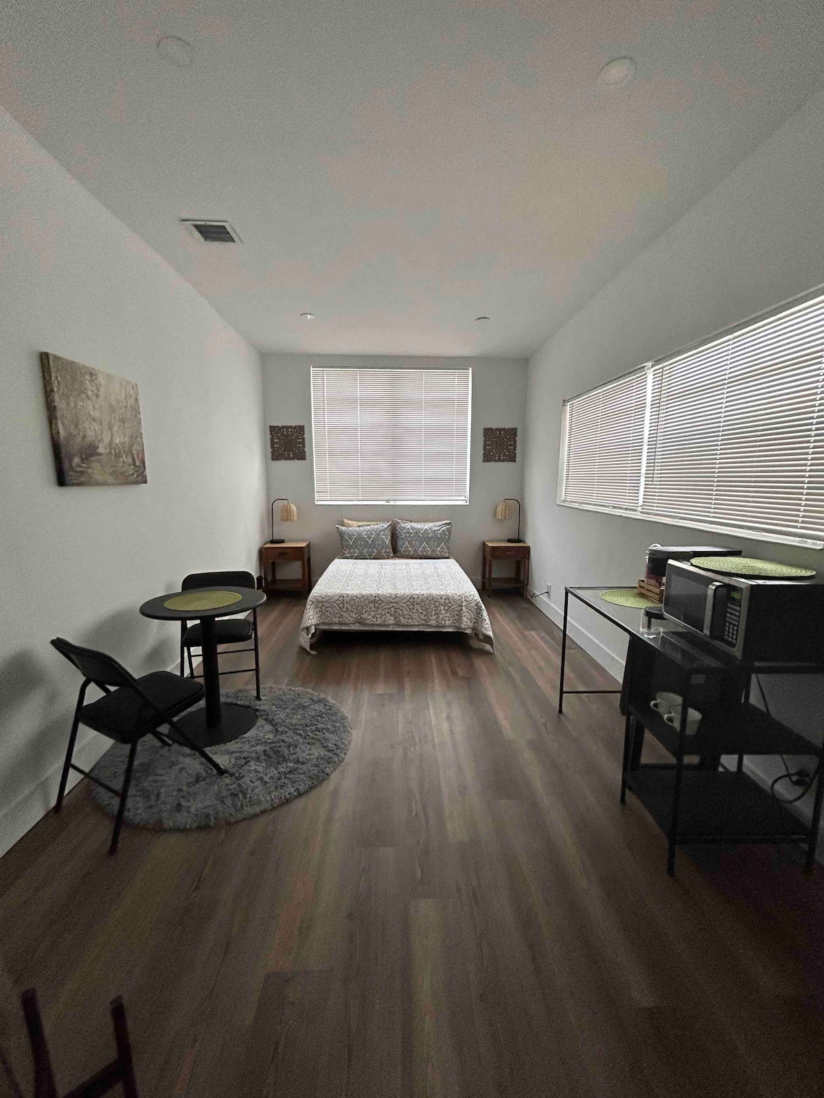Αυτό το στούντιο έχει σχεδιαστεί για άνεση και απλότητα. Προσφέρει έναν καθαρό, φωτεινό, πλήρως εξοπλισμένο χώρο με ένα άνετο κρεβάτι, πλήρως εξοπλισμένη κουζίνα, μοντέρνο μπάνιο, τηλεόραση smart TV, γρήγορο WiFi και δωρεάν πάρκινγκ. Πολύ κεντρική περιοχή, εύκολη πρόσβαση στα κορυφαία σημεία του Μαϊάμι. Βρίσκεται στη Μικρή Αβάνα, σε απόσταση 10 λεπτών με τα πόδια από την εμβληματική Calle 8 που περιβάλλεται από εστιατόρια, καφετέριες, μπαρ, μόνο 7 λεπτά με το αυτοκίνητο από το Brickell. Ιδανικό για μόνους ταξιδιώτες ή ζευγάρια που θέλουν μια άνετη, εύκολη βάση σε μία από τις πιο ζωντανές γειτονιές της πόλης.