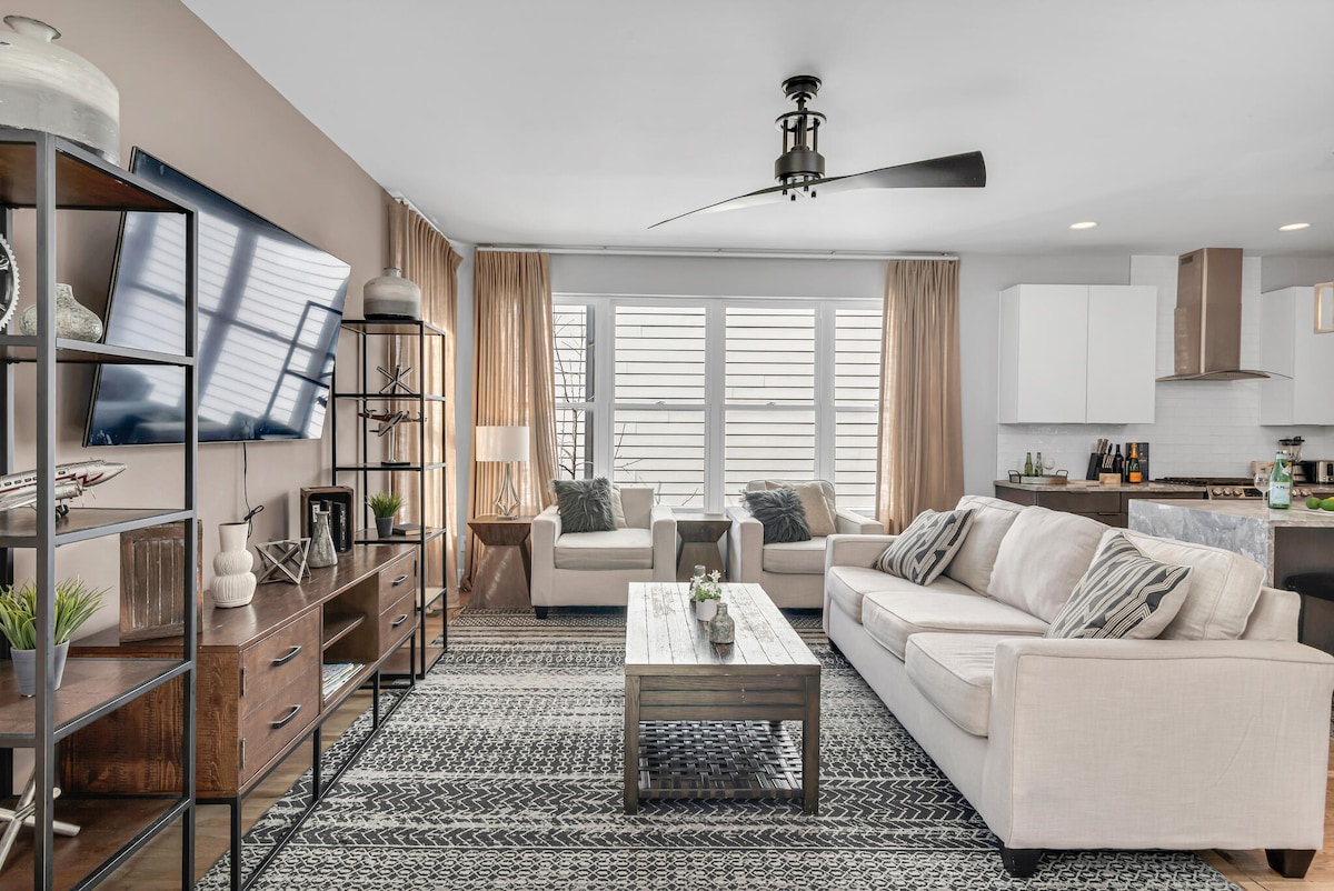 Two-story condo, a very short Uber/Lyft to Broadway and walkable to the sand volleyball courts, The Parthenon, Centennial Park, and Blackstone Brewery. Two bedrooms with ensuite bathrooms. Sleeps an additional guest for 5 total, with a deluxe Aerobed air mattress (plugs in and inflates/deflates in 2 minutes) and foam sleeper top. Very comfortable. TV, 1000 MBPS WiFi, and large island if you need to get some work done. This condo is brand new and makes a comfortable retreat inside the city!