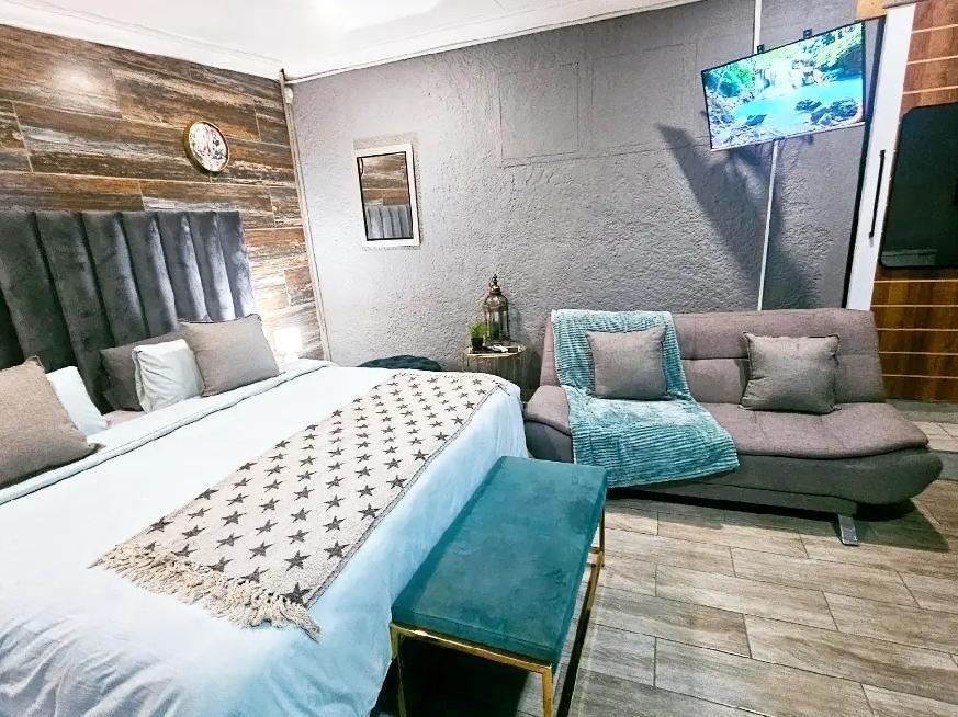 Enjoy a load-shedding-free stay with full solar backup and fast WiFi! Perfect for business or a quiet getaway. Space: Modern 1-bed with workspace, full kitchenette (gas stove/fridge), and garden views with birdlife. Security: Gated parking, cameras, and armed response. Location: 2 mins to Checkers/Pick N Pay/Centers 25 mins to OR Tambo, 30 mins to Sandton. Extras: Laundry on request.Pool access by prior arrangement. Discounts on local restaurants Host lives on-site; respectful guests only.