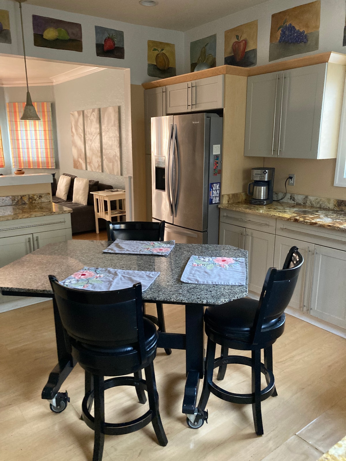 Σύνολο 4 κρεβάτια - 2 διπλά κρεβάτια, 1 μονό, 1 πλήρες Ο 3ος όροφος είναι μια ιδιωτική, ήσυχη, άνετη σουίτα. Νεόκτιστο μπάνιο και ανακαινίσεις σε όλους τους χώρους. Φιλοξενεί άνετα 6 κρεβάτια (2 διπλά, 1 διπλό, 1 μονό. Υπάρχει 1 πλήρες μπάνιο. Έχω μια γάτα που μπαίνει στο κάτω επίπεδο της σκάλας για να έχει πρόσβαση στην τουαλέτα της στο υπόγειο. Αλλά δεν μπαίνουν στην τριώροφη μονάδα. Έχω επίσης 2 υπέροχα σκυλιά που μπορεί να δείτε όταν μπείτε.