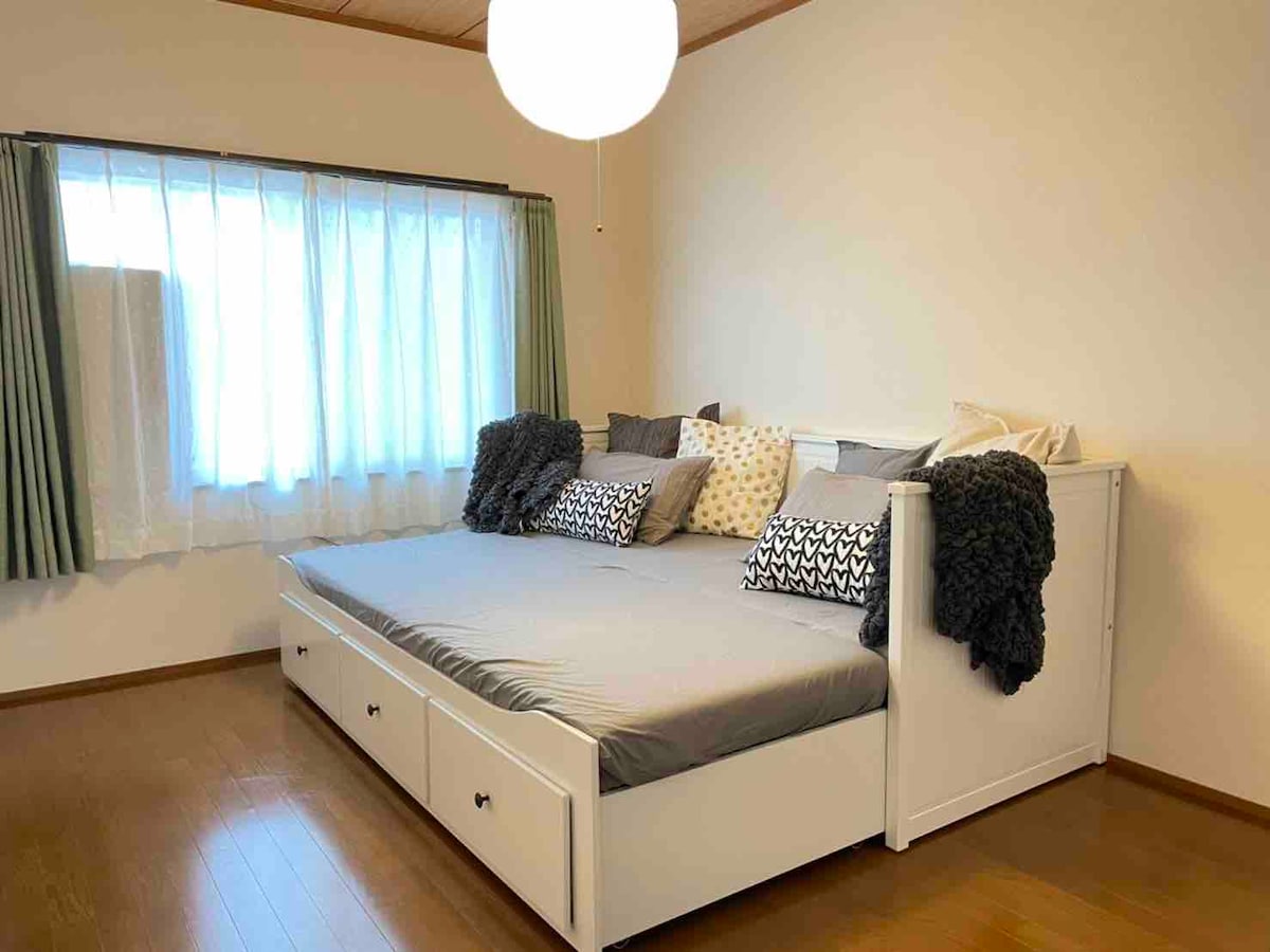 - TOMOE HOUSE is officially certified for operating Private Lodging Business (Minpaku) - Renovated and newly open on June 21! - Located only a 15- min walk from the famous Hyotan Onsen and Kannawa Onsen area. - There is a community hot spring bath house within a minute-walk from the guest room. - We have some items for babies; a baby bed, a baby chair, a bouncer, etc. - The layout of the rooms is subject to change.