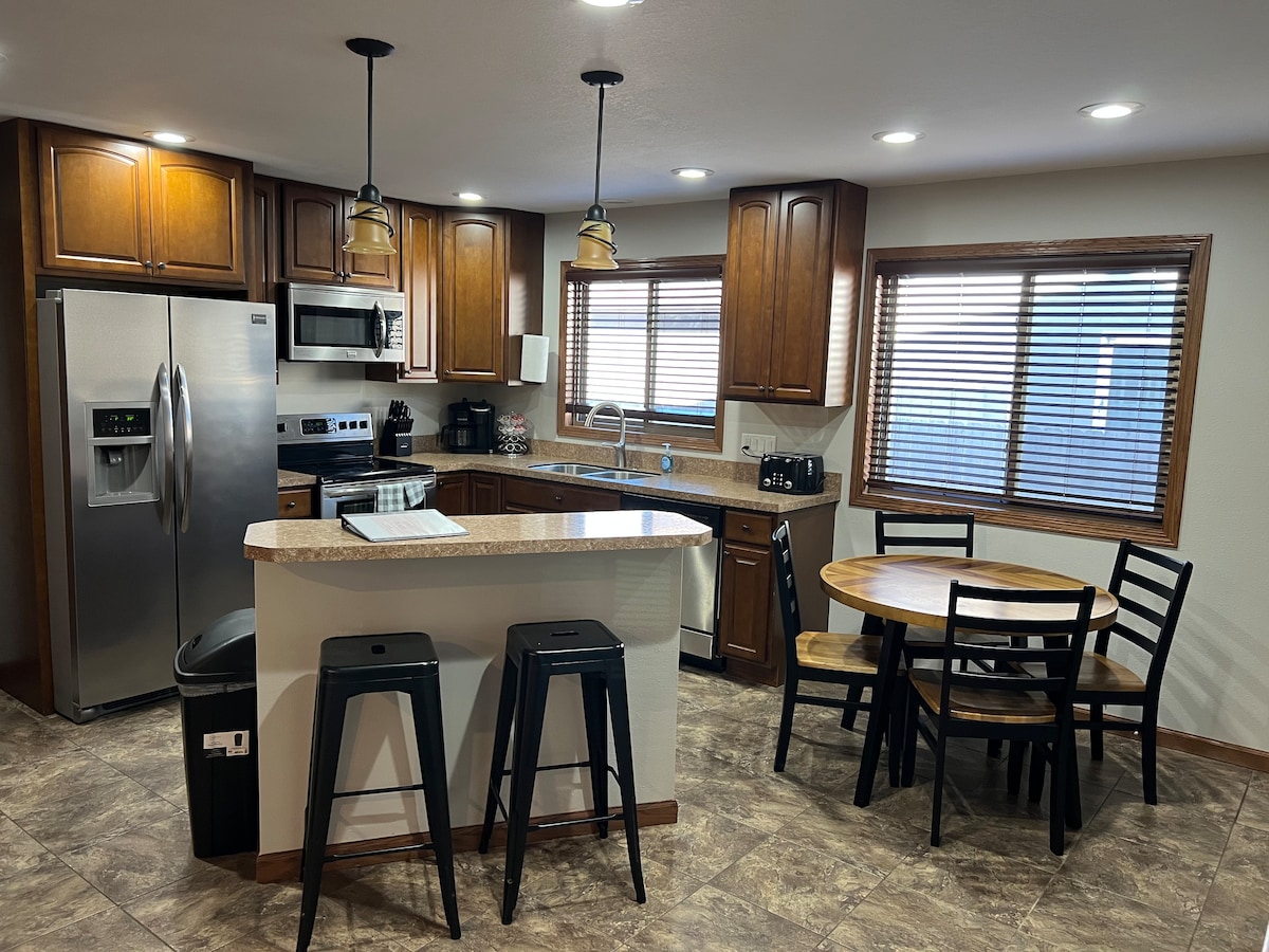 Απολαύστε ένα ολόκληρο σπίτι σε στιλ ράντσου με όμορφη θέα στη λίμνη. Αυτό το σπίτι βρίσκεται στην άκρη της πόλης και μπορεί να φιλοξενήσει μια μεγάλη οικογένεια. Η σκεπαστή αυλή προσθέτει εξωτερικό χώρο και η πλήρης κουζίνα και οι δύο χώροι διαβίωσης παρέχουν άφθονο χώρο για την ομάδα σας.