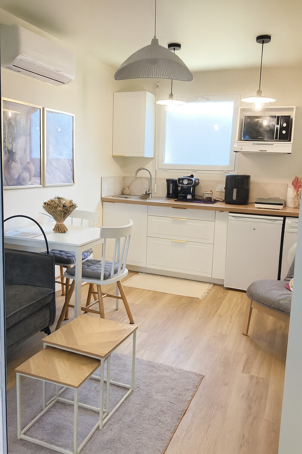 Logement pour 2 personnes de 40 m2 à proximité du centre ville et de toutes commodités et à 4 kilomètres d'Arcachon. Cuisine entièrement équipée - wc indépendant - une chambre avec rangements - lit 140 - salle d’eau avec douche et grande vasque - jardin - plancha. Votre véhicule sera en sécurité, une place de parking à votre disposition dans le jardin. (Ce logement ne convient pas aux bébés, aux enfants ainsi qu’aux animaux). Le jacuzzi sera installé à partir du 6 juin 2026.