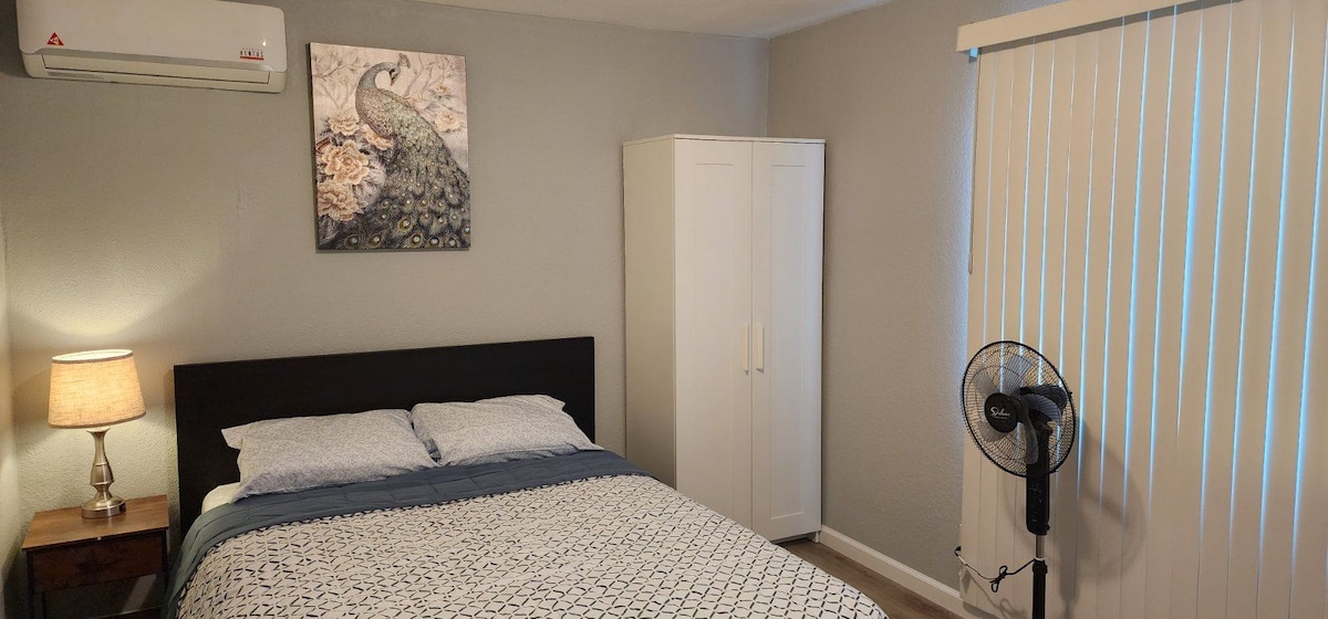 Full Bed, AC, & Friendly Cats, 15 min to Airport