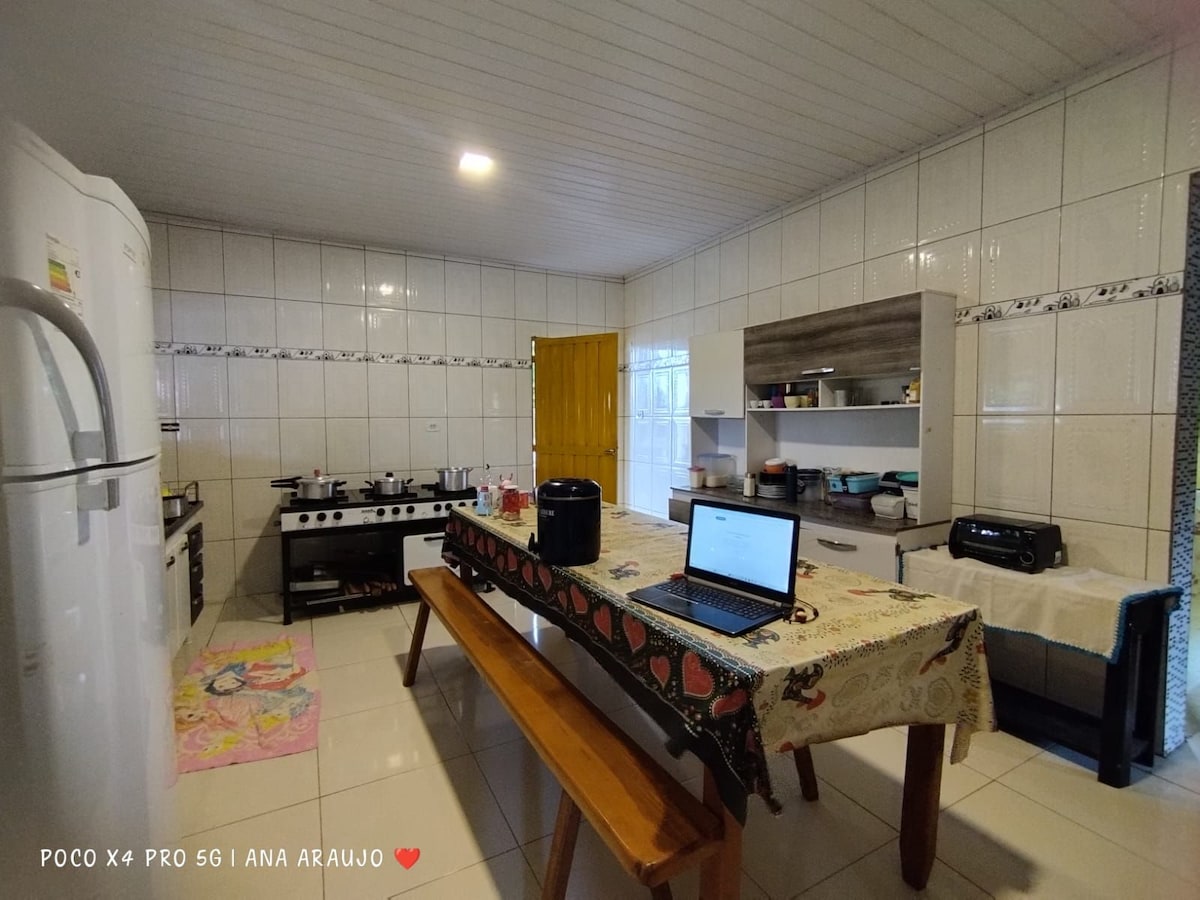 Venha curtir as Belezas Naturais de Bodoquena. A casa possui: 2 quartos com ar condicionado, 3 Camas de Casal 2 de Solteiro e 2 colchões reserva. 2 Banheiros 1 sala 1 Mega cozinha. 2 Áreas externas cobertas Garagem para até 3 Carros Roupas de cama e toalha de Banho Inclusos*