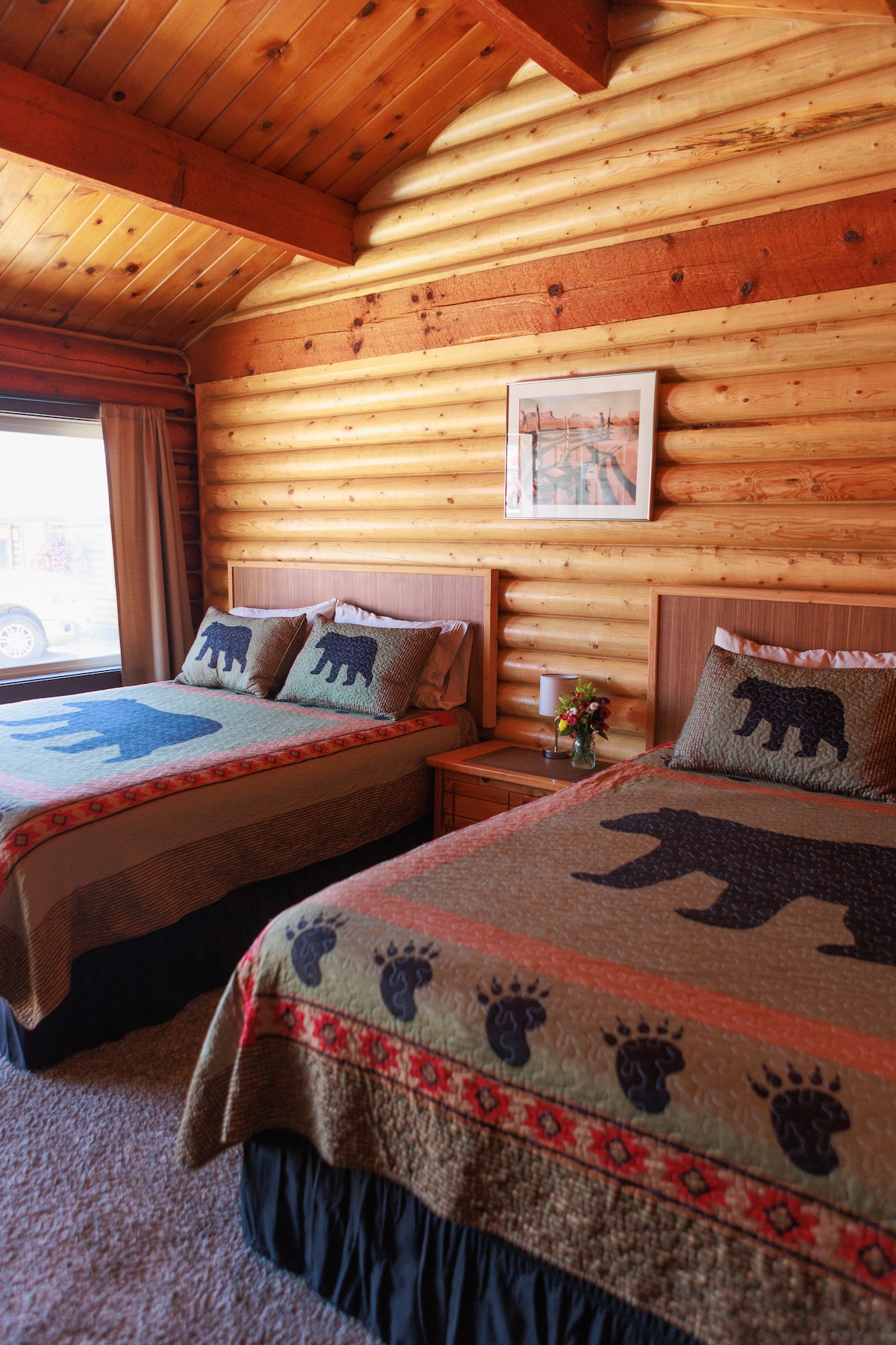 Enjoy a cozy cabin-style stay in this clean 2-queen room near Flathead Lake. Warm log walls, comfortable bedding, fast WiFi, and easy parking make this a perfect base for exploring the Mission Valley. Close to lakes, trails, and local dining, this simple and charming room is ideal for travelers, families, and weekend getaways. Reliable comfort in a great location.