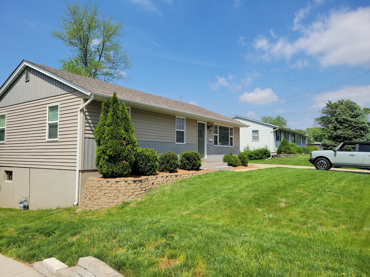Επισκεφθείτε την έκτασή μας στην εξοχή που βρίσκεται στους λόφους βόρεια του Κάνσας Σίτι - λίγα λεπτά από το αεροδρόμιο KCI (MCI), Weston, St. Joseph και το Κάνσας Σίτι. Η εμπειρία σας ξεκινά με μια διαδρομή με δέντρα, συμπεριλαμβανομένων αειθαλών, ενός οπωρώνα, άγριων μούρων, κήπου με γηγενή φυτά, μονοπατιών, αγριολούλουδα, ηλιακή συστοιχία, ανεμογεννήτρια και μια περιοχή για φωτιά ανάμεσα στα δέντρα. Φύση σε αφθονία! Κάτω ολοκληρωμένο υπόγειο επίπεδο του καταλύματός μας - ιδιωτική, ανέπαφη είσοδος με σκάλα. Μπορούμε να είμαστε έτοιμοι σε σύντομο χρονικό διάστημα!